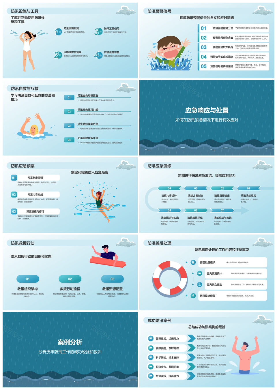 这是一张安全防汛应急管理风险预警救援案例宣传PPT模板,包含安全、防汛、应急管理、风险、预警、救援、案例、宣传等主题内容,也可用作安全防汛应急管理风险预警、安全防汛应急管理救援、安全防汛应急管理案例、安全防汛风险预警救援、安全防汛风险预警案例、安全防汛救援案例宣传、防汛应急管理风险预警、防汛应急管理救援案例、应急管理风险预警救援、应急管理救援案例宣传、风险预警救援案例宣传、安全防汛应急管理、防汛应急管理救援、应急管理风险预警、救援案例宣传等PPT场景使用。 风云办公提供的安全防汛应急管理风险预警救援案例宣传PPT模板,下载格式为pptx,一共20页,作品中文字及图均可以修改和编辑,图片更改请在作品中右键图片并更换,文字修改请直接点击文字进行修改。