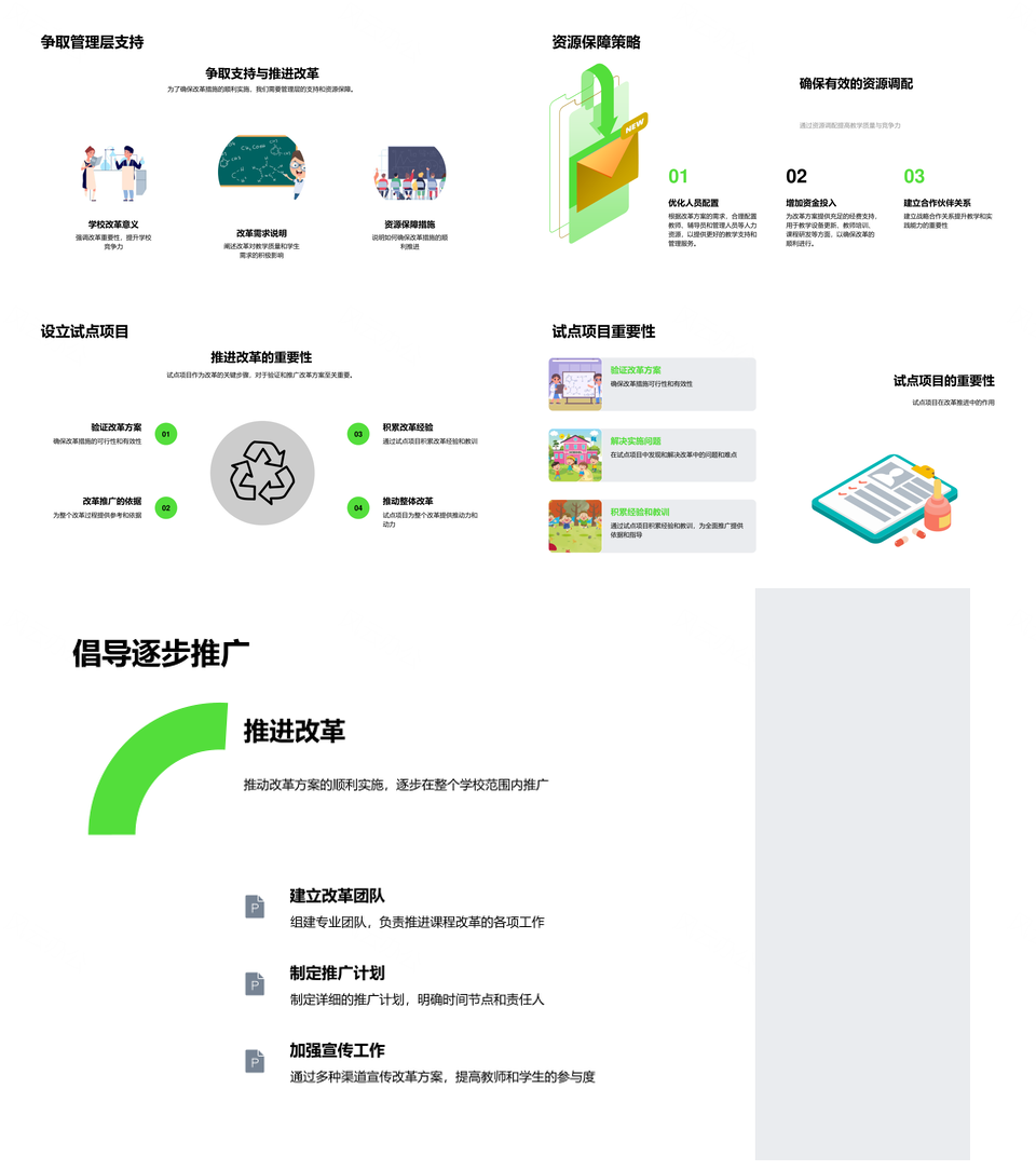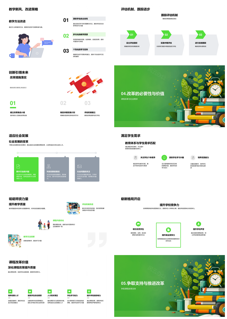 这是一张课程改革教育创新方案目标教法评估汇报PPT模板,包含课程改革、教育创新、方案、目标、教法、评估、汇报等主题内容,也可用作课程改革教育创新方案、课程改革教育创新目标、课程改革教育创新教法、课程改革教育创新评估、课程改革教育创新汇报、课程改革教育方案目标、课程改革教育目标教法、课程教育改革创新方案、课程改革方案目标教法、教育创新方案目标教法、教育创新目标教法评估、教育方案目标教法评估、创新方案目标教法评估、方案目标教法评估汇报、目标教法评估汇报创新等PPT场景使用。 风云办公提供的课程改革教育创新方案目标教法评估汇报PPT模板,下载格式为pptx,一共33页,作品中文字及图均可以修改和编辑,图片更改请在作品中右键图片并更换,文字修改请直接点击文字进行修改。