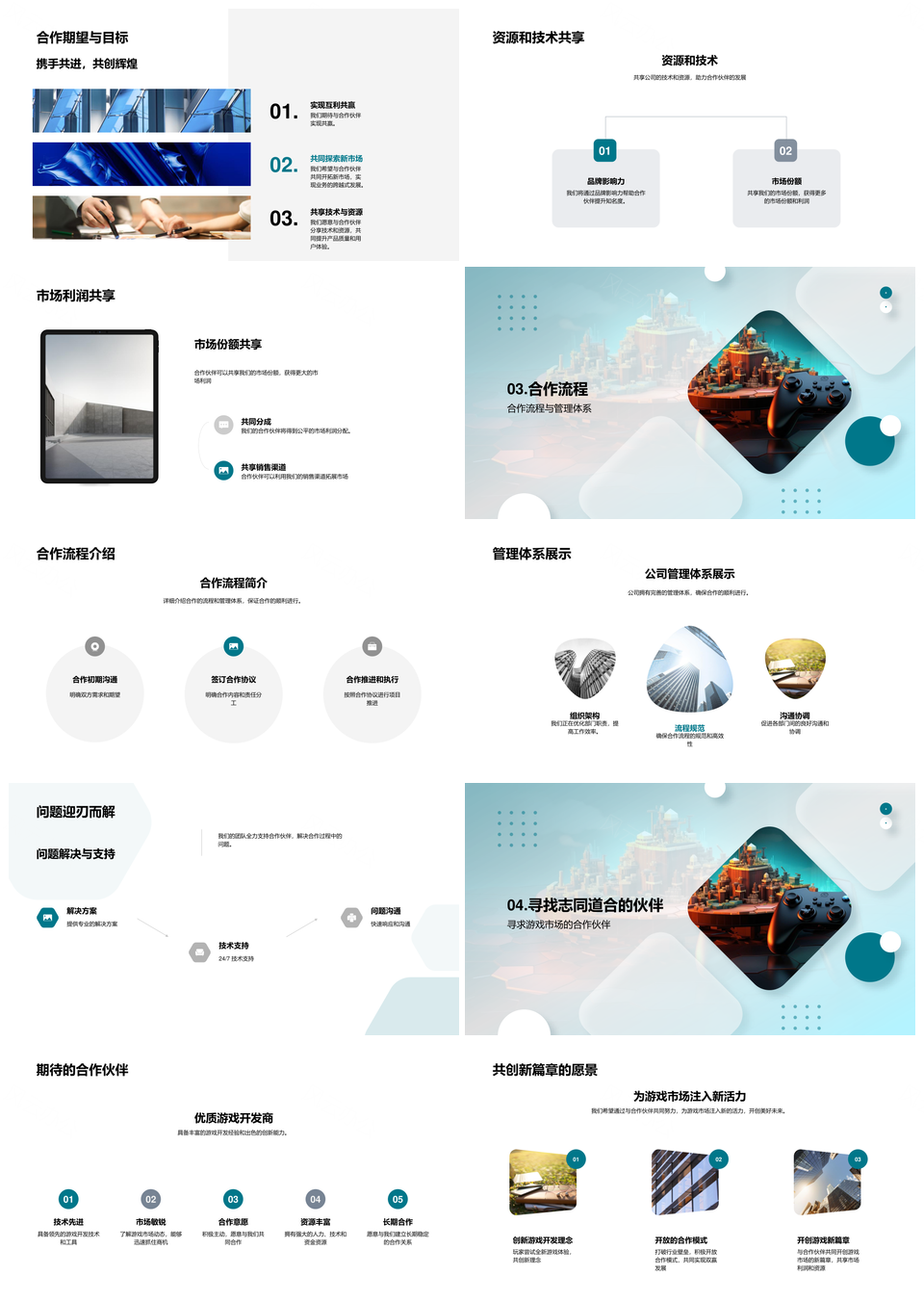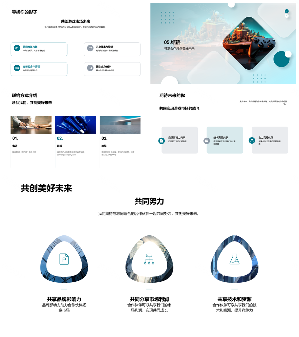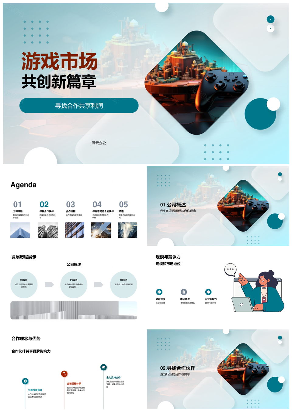 这是一张游戏市场合作开发共享利润技术推广拓份额PPT模板,包含游戏市场、合作开发、共享利润、技术推广、拓展份额等主题内容,也可用作游戏市场合作开发、合作开发共享利润、市场合作开发共享、共享利润技术推广、利润技术推广拓份额、游戏市场技术推广、合作开发技术推广、开发技术推广拓份额、技术推广拓份额、合作开发共享、开发共享利润、市场合作开发、开发技术推广、游戏技术推广、技术推广等PPT场景使用。 风云办公提供的游戏市场合作开发共享利润技术推广拓份额PPT模板,下载格式为pptx,一共23页,作品中文字及图均可以修改和编辑,图片更改请在作品中右键图片并更换,文字修改请直接点击文字进行修改。