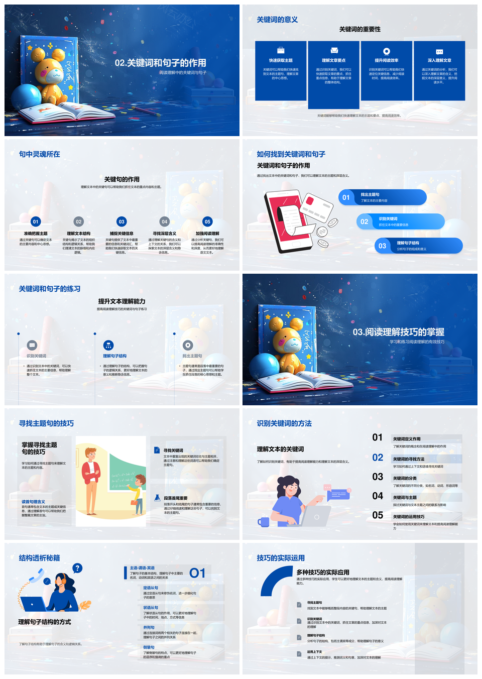 风云办公提供的语文阅读理解技能句子结构主题句解析教学课件,下载格式为pptx,一共28页,作品中文字及图均可以修改和编辑,图片更改请在作品中右键图片并更换,文字修改请直接点击文字进行修改。