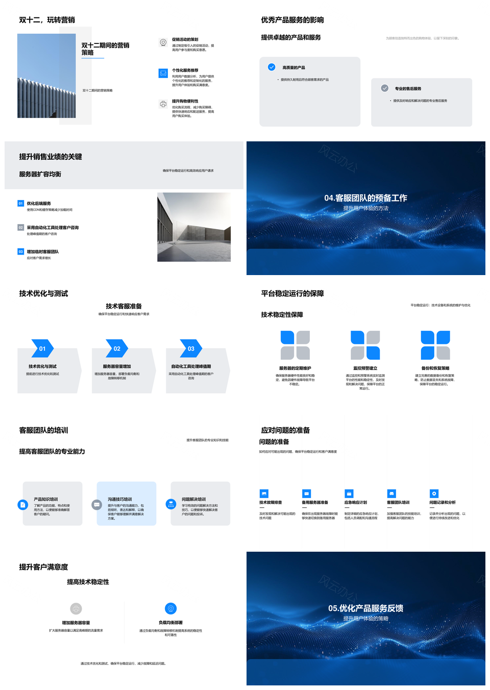 这是一张双十二用户体验销售提升服务技术优化策略PPT模板,包含双十二、用户体验、销售提升、服务技术、优化策略等主题内容,也可用作双十二用户体验销售提升服务、双十二用户体验销售提升技术、用户体验销售提升服务技术、销售提升服务技术优化策略、双十二服务技术优化策略、用户体验技术优化策略、销售服务技术优化、双十二提升服务技术、用户体验提升服务技术、用户体验服务优化策略、双十二销售技术优化、服务技术优化策略、用户体验技术优化、销售提升技术优化、双十二用户体验优化等PPT场景使用。 风云办公提供的双十二用户体验销售提升服务技术优化策略PPT模板,下载格式为pptx,一共33页,作品中文字及图均可以修改和编辑,图片更改请在作品中右键图片并更换,文字修改请直接点击文字进行修改。
