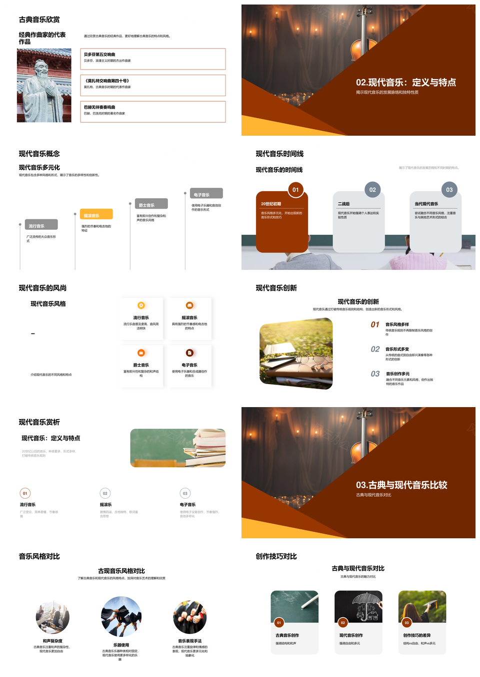 风云办公提供的古典现代音乐艺术历史结构与和声演变PPT模板,下载格式为pptx,一共33页,作品中文字及图均可以修改和编辑,图片更改请在作品中右键图片并更换,文字修改请直接点击文字进行修改。