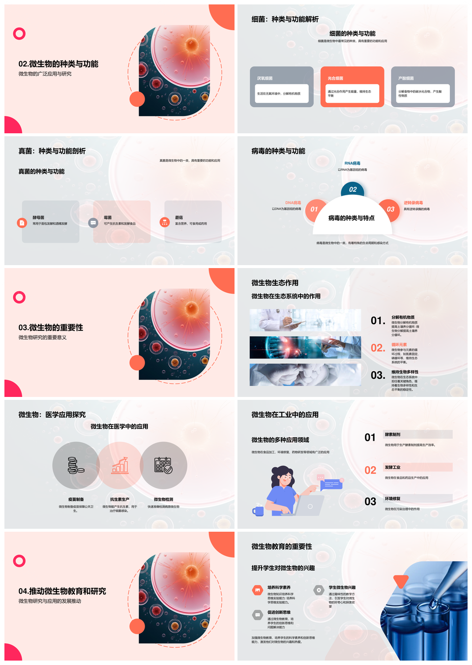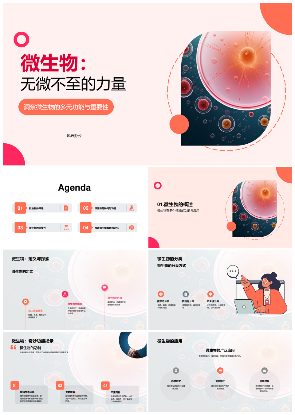 风云办公提供的微生物种类应用生态医学工业解析PPT模板,下载格式为pptx,一共20页,作品中文字及图均可以修改和编辑,图片更改请在作品中右键图片并更换,文字修改请直接点击文字进行修改。