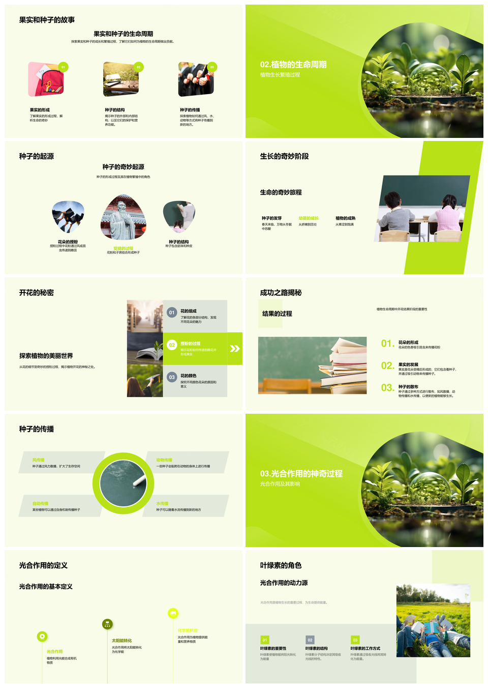 风云办公提供的植物世界生长秘密与光合繁殖探秘PPT模板,下载格式为pptx,一共28页,作品中文字及图均可以修改和编辑,图片更改请在作品中右键图片并更换,文字修改请直接点击文字进行修改。