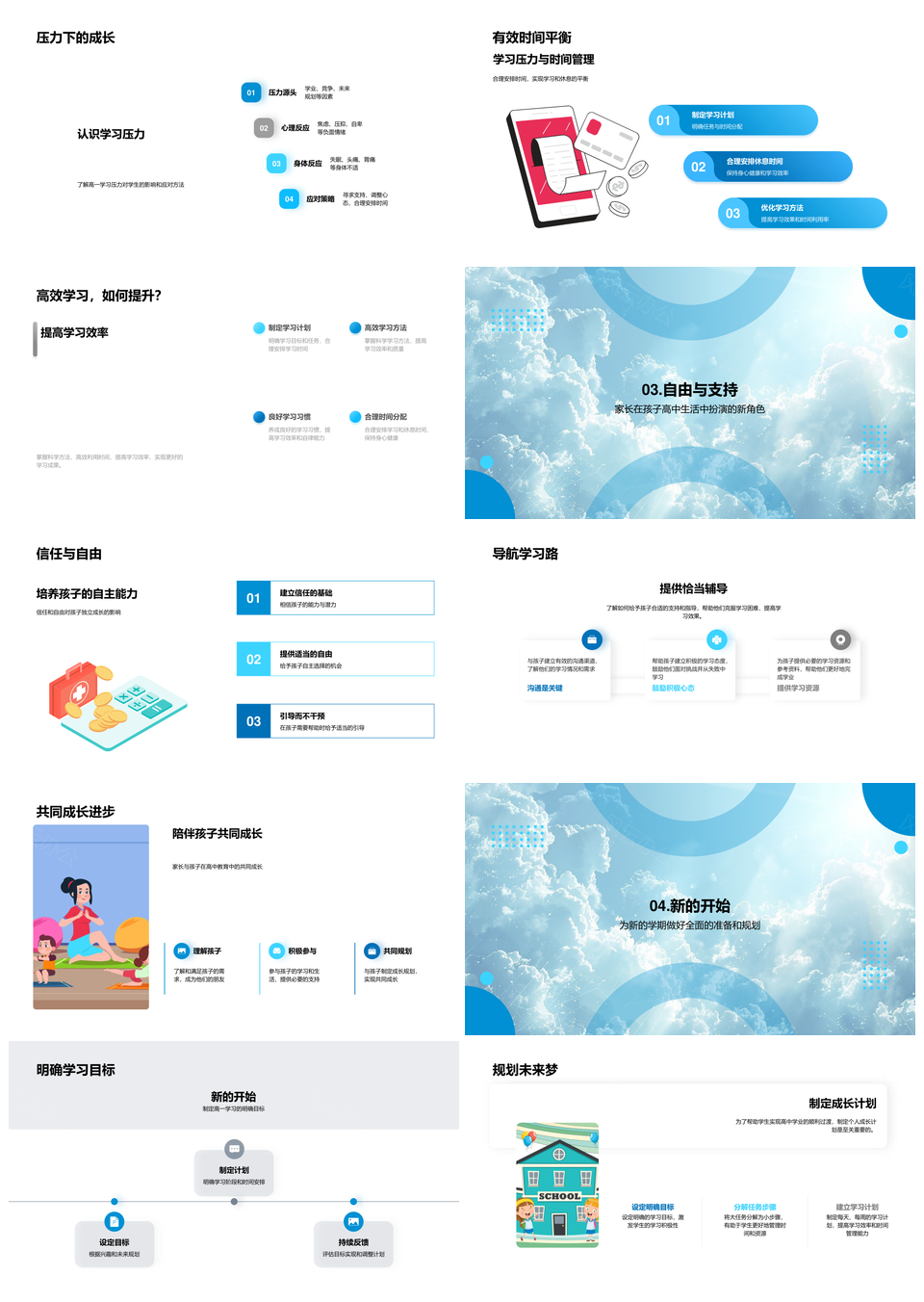 高一启程家长支持自我管理开学首课学科专家助力减压PPT模板推荐