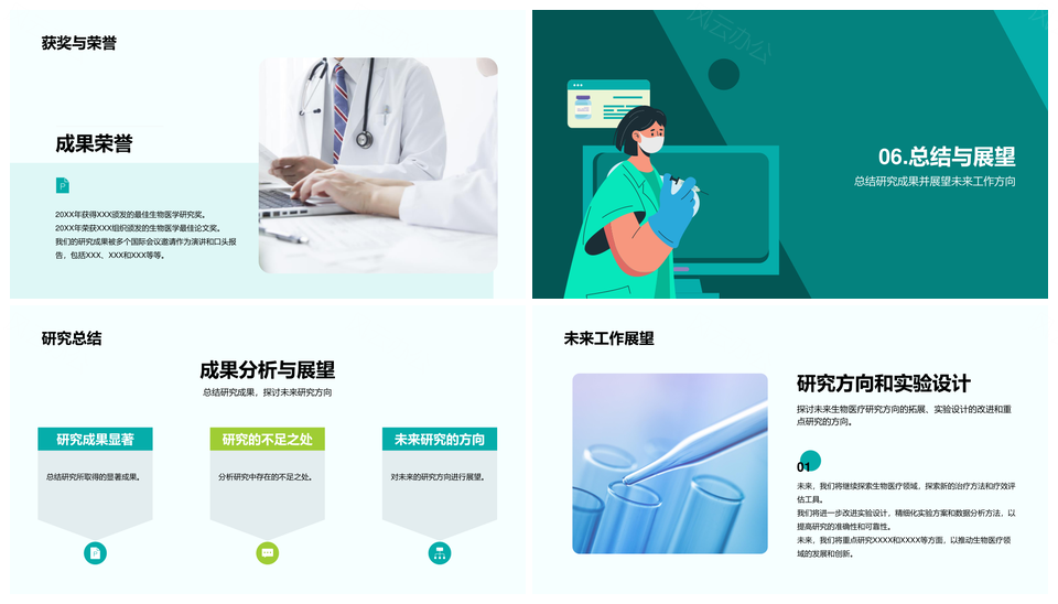 风云办公提供的绿色卡通插画生物医疗学术研究汇报PPT模板,下载格式为pptx,一共22页,作品中文字及图均可以修改和编辑,图片更改请在作品中右键图片并更换,文字修改请直接点击文字进行修改。