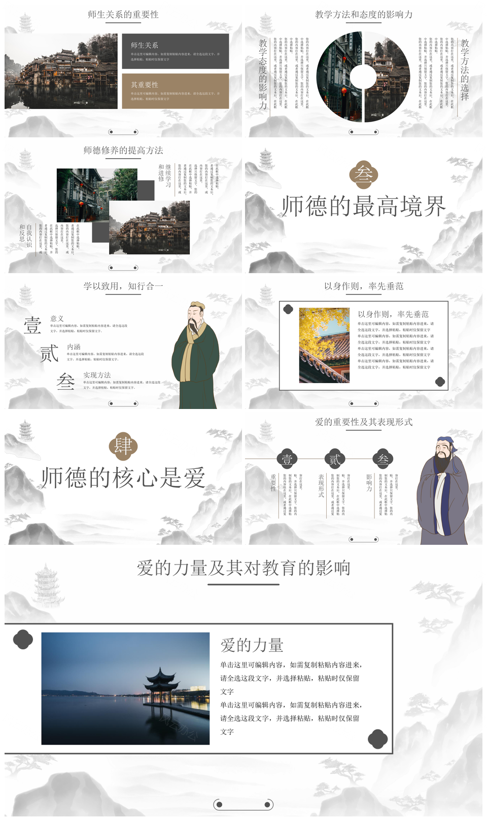 国风水墨师德师风职业素养历史主题讲座PPT模板推荐