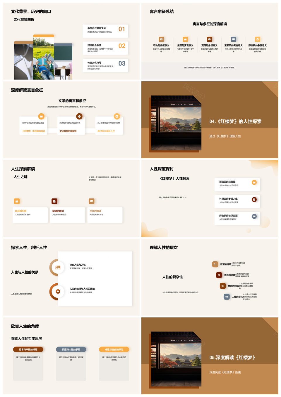 这是一张红楼梦高中教学人性生命创作背景深度解析PPT模板,包含红楼梦、高中教学、人性、生命、创作背景、深度解析等主题内容,也可用作红楼梦高中教学人性、高中教学人性生命、教学人性生命创作、人性生命创作背景、生命创作背景深度、创作背景深度解析、红楼梦教学创作背景、高中人性生命创作、教学生命背景深度、人性生命深度解析、生命创作背景解析、高中教学深度解析、红楼梦人性生命创作、教学创作背景解析、深度解析背景创作等PPT场景使用。 风云办公提供的红楼梦高中教学人性生命创作背景深度解析PPT模板,下载格式为pptx,一共33页,作品中文字及图均可以修改和编辑,图片更改请在作品中右键图片并更换,文字修改请直接点击文字进行修改。