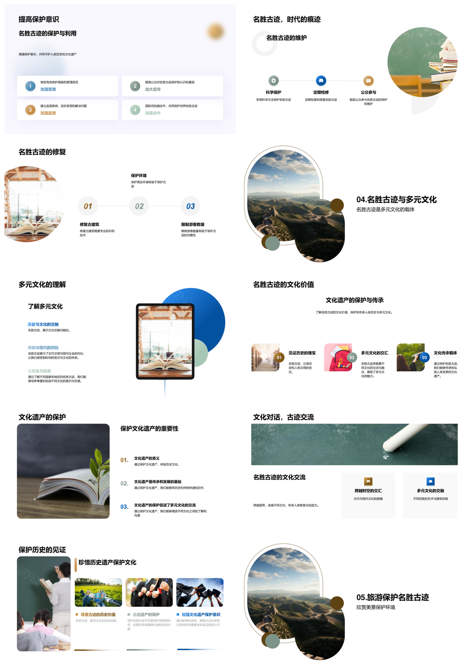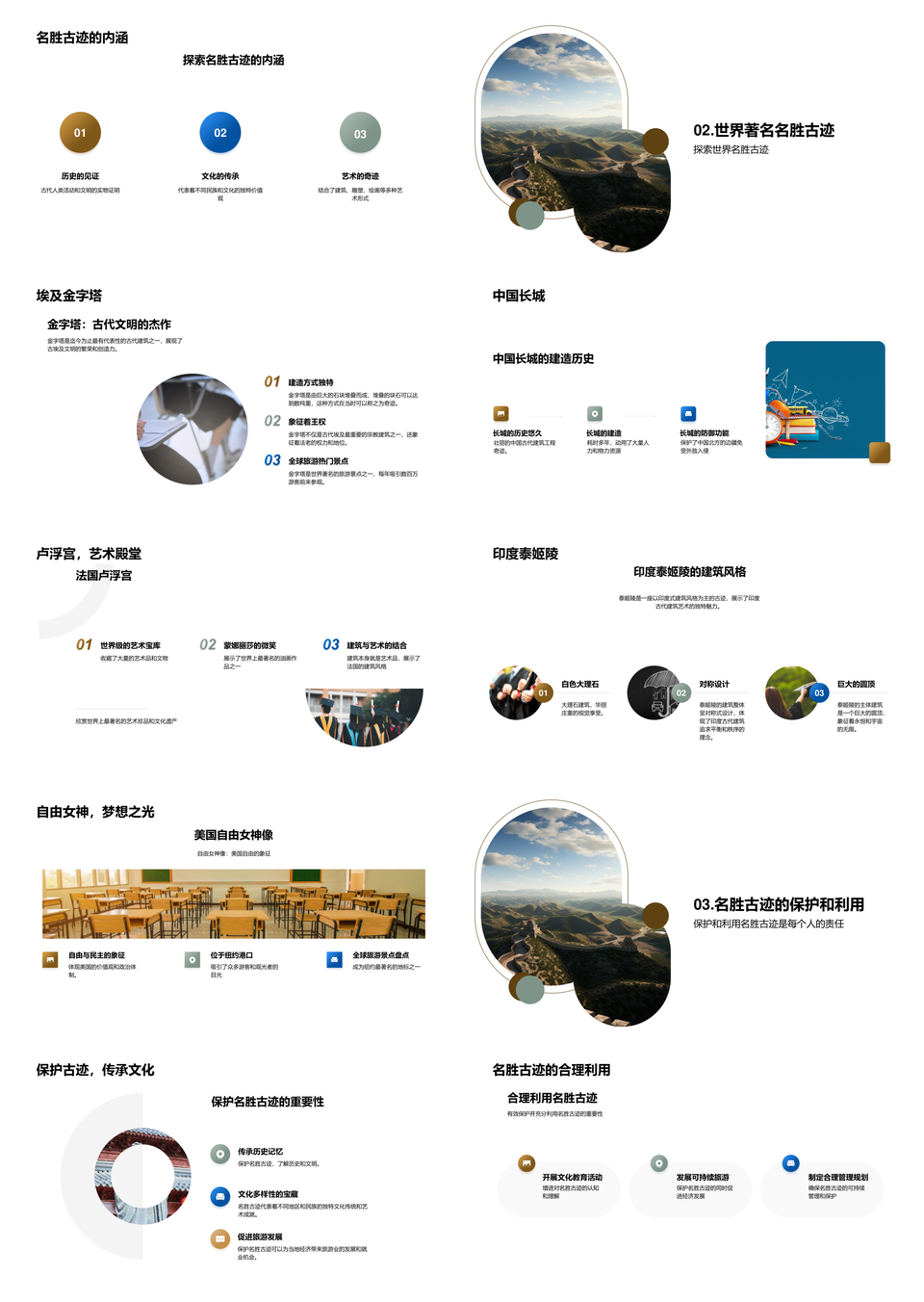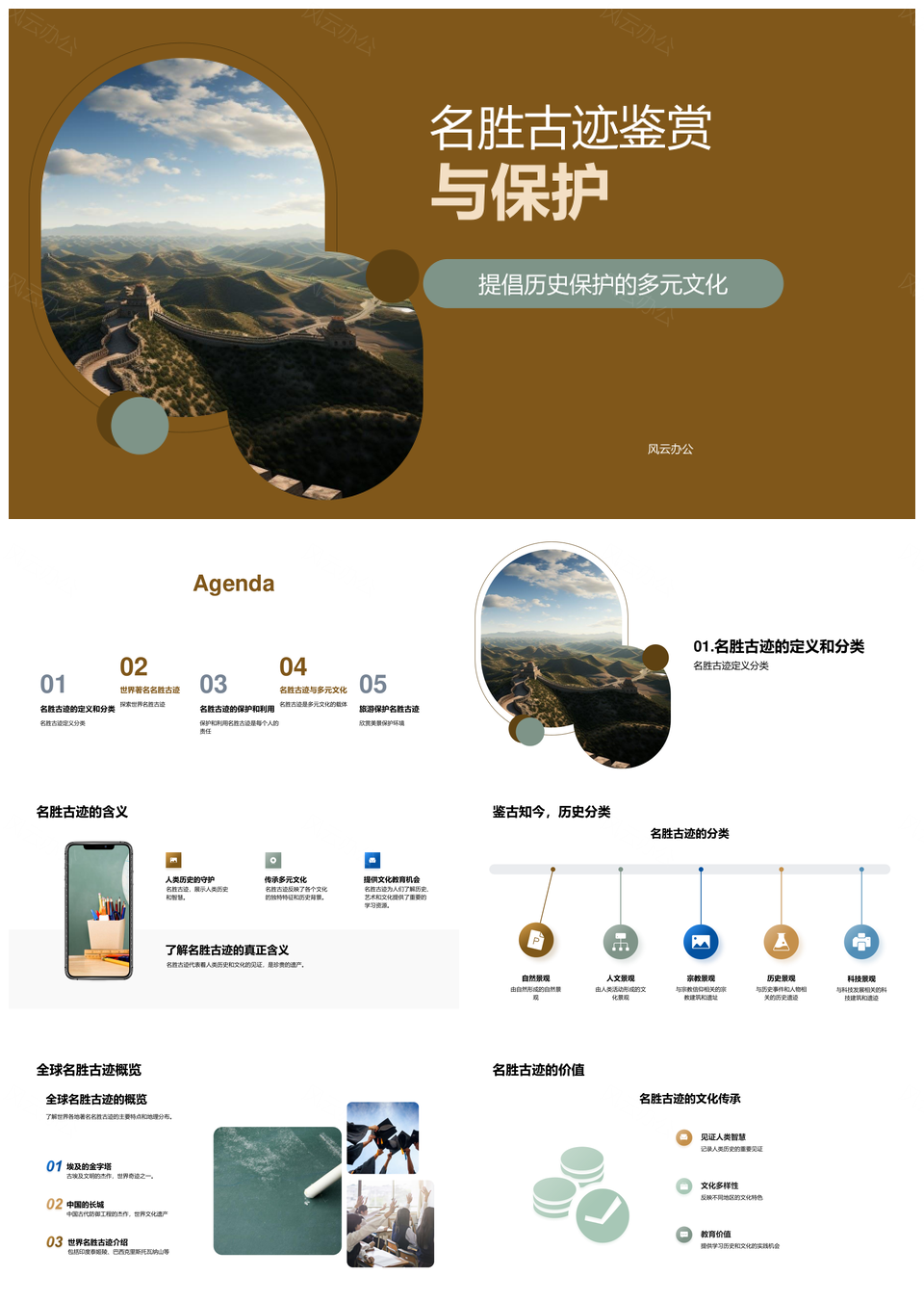 风云办公提供的古迹保护与多元文化教育普及PPT模板,下载格式为pptx,一共33页,作品中文字及图均可以修改和编辑,图片更改请在作品中右键图片并更换,文字修改请直接点击文字进行修改。
