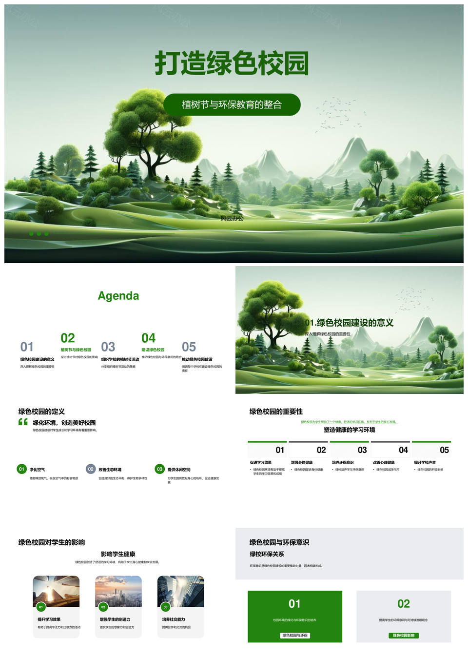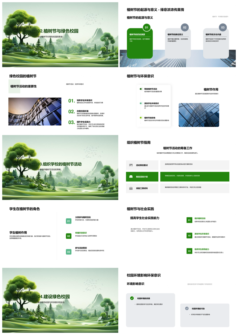 风云办公提供的学生植树节实践环保教育共建绿色校园PPT模板,下载格式为pptx,一共24页,作品中文字及图均可以修改和编辑,图片更改请在作品中右键图片并更换,文字修改请直接点击文字进行修改。