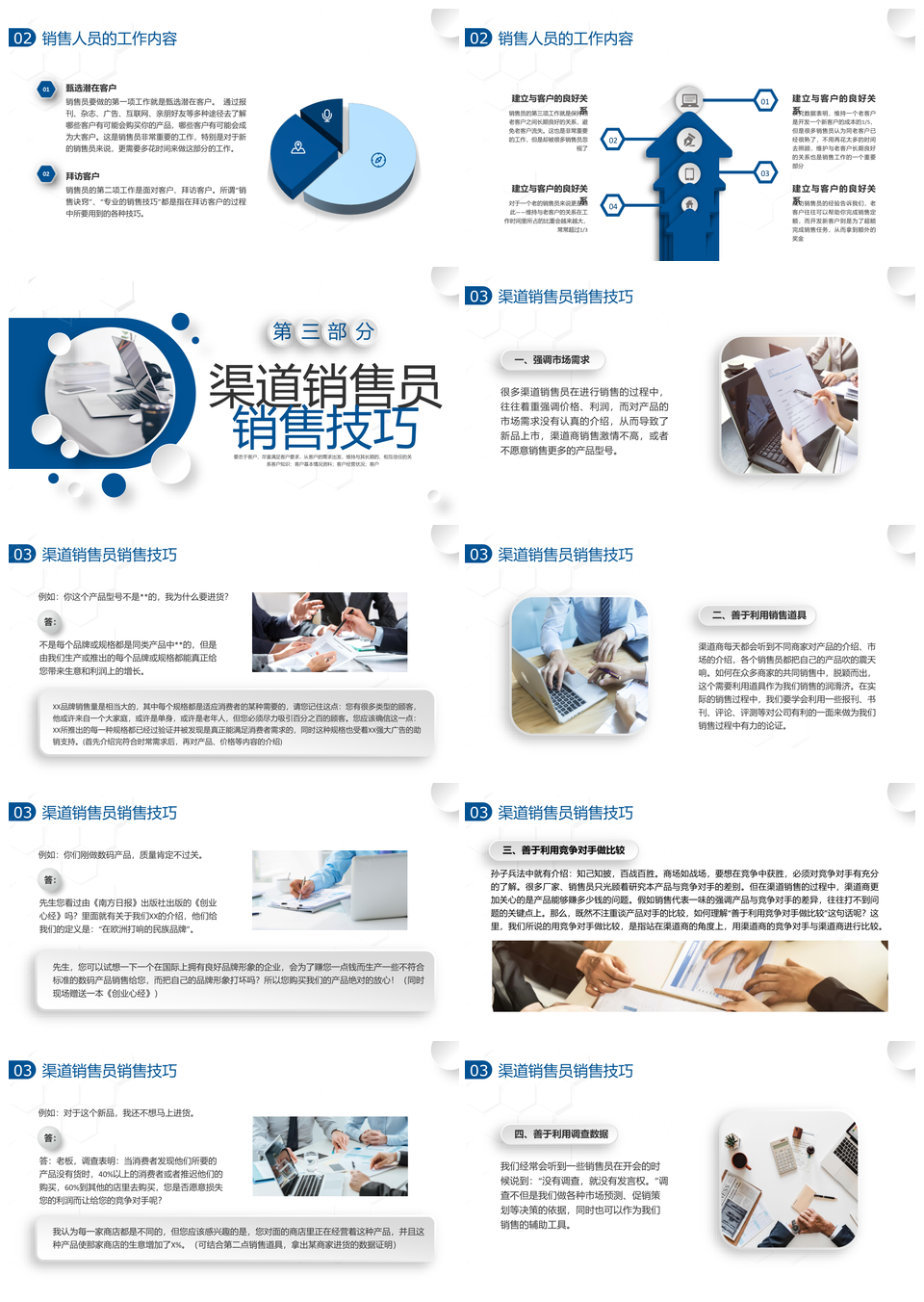 风云办公提供的蓝色简约渠道销售技巧培训动态PPT模板,下载格式为pptx,一共30页,作品中文字及图均可以修改和编辑,图片更改请在作品中右键图片并更换,文字修改请直接点击文字进行修改。