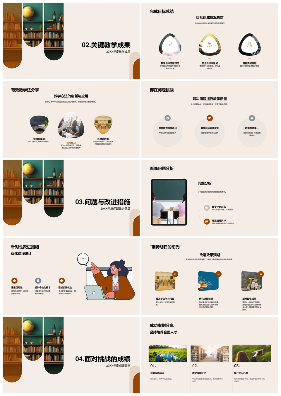 2025教学年度总结计划管理评估教学法挑战改进案例PPT模板推荐