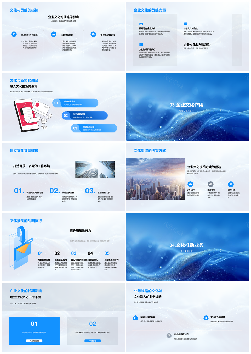 这是一张企业文化战略融入高管培训推动企业发展PPT模板,包含企业文化、战略、融入、高管培训、推动、企业发展等主题内容,也可用作企业文化战略融入高管培训、战略融入高管培训推动、融入高管培训推动企业发展、企业文化战略融入、战略融入高管培训、融入高管培训推动、高管培训推动企业发展、企业文化战略、战略融入、融入高管培训、高管培训推动、推动企业发展、企业文化战略推动、战略融入推动、战略推动企业发展等PPT场景使用。 风云办公提供的企业文化战略融入高管培训推动企业发展PPT模板,下载格式为pptx,一共23页,作品中文字及图均可以修改和编辑,图片更改请在作品中右键图片并更换,文字修改请直接点击文字进行修改。