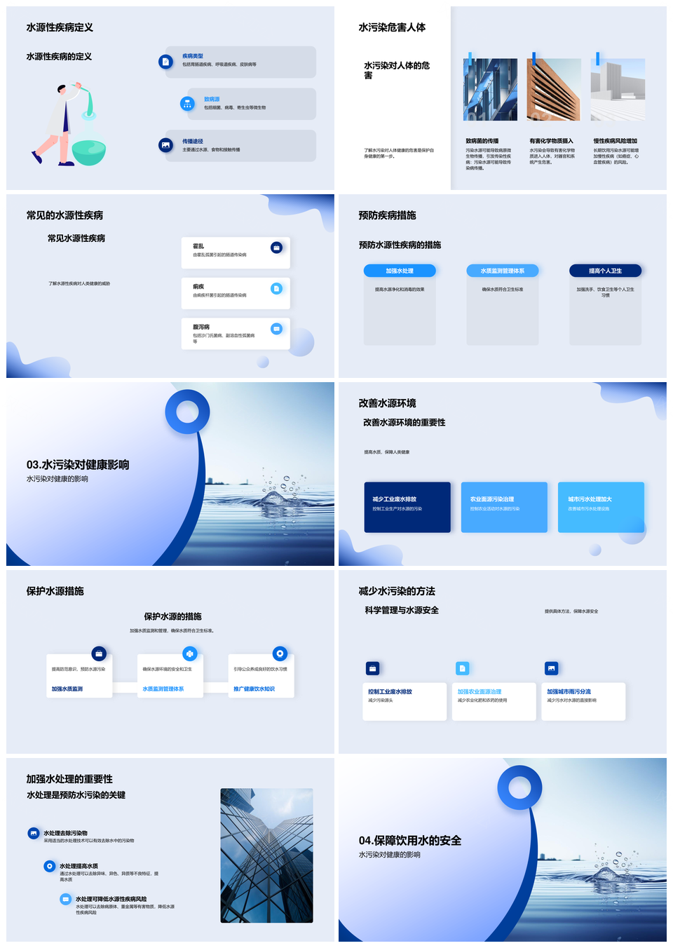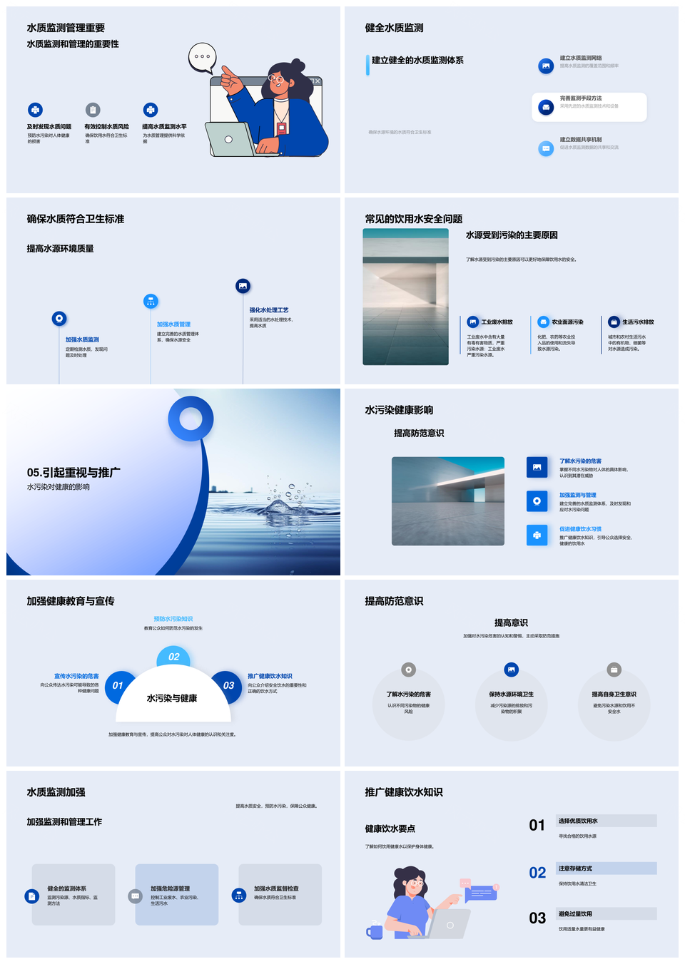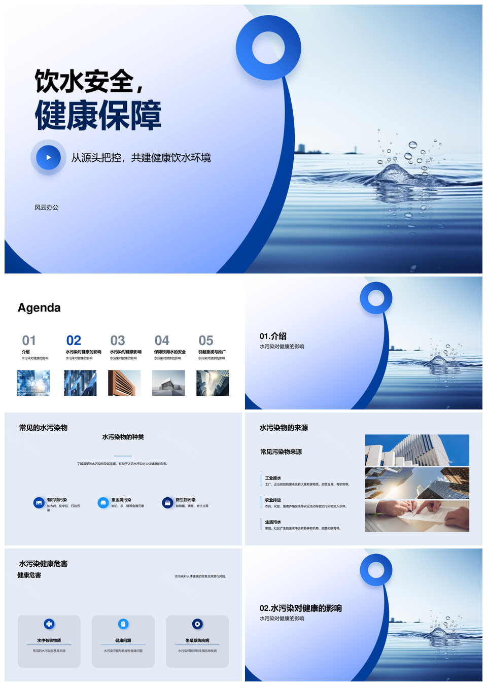 风云办公提供的净水护健康意识防污染保饮水安全PPT模板,下载格式为pptx,一共29页,作品中文字及图均可以修改和编辑,图片更改请在作品中右键图片并更换,文字修改请直接点击文字进行修改。