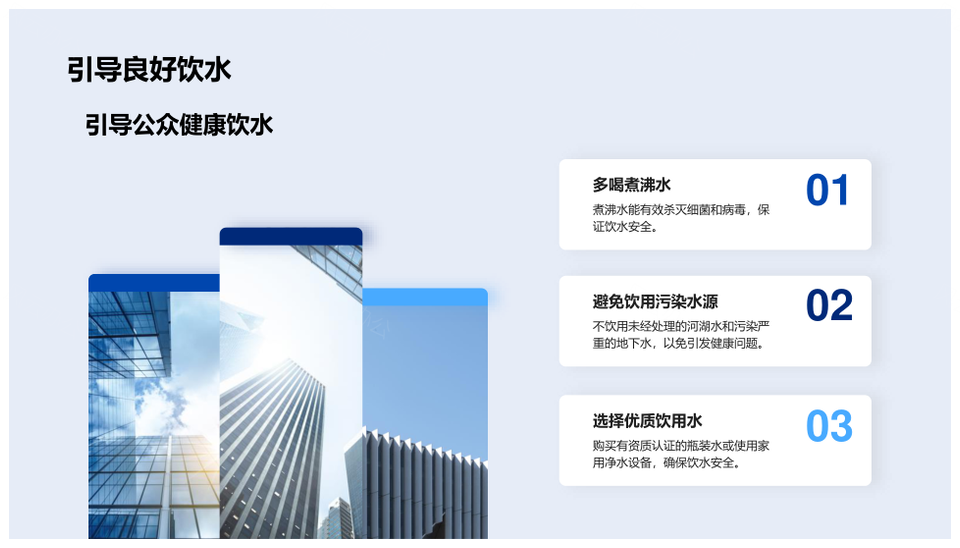 这是一张净水护健康意识防污染保饮水安全PPT模板,包含净水、护健康、意识、防污染、饮水安全等主题内容,也可用作净水护健康意识防污染、健康意识防污染保饮水、防污染保饮水安全、净水健康意识防污染、健康意识防污染饮水、防污染保饮水安全、净水护健康意识、健康意识防污染、防污染保饮水、净水健康意识、健康防污染、防污染饮水、保饮水安全、净水健康、饮水安全等PPT场景使用。