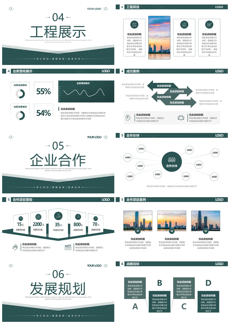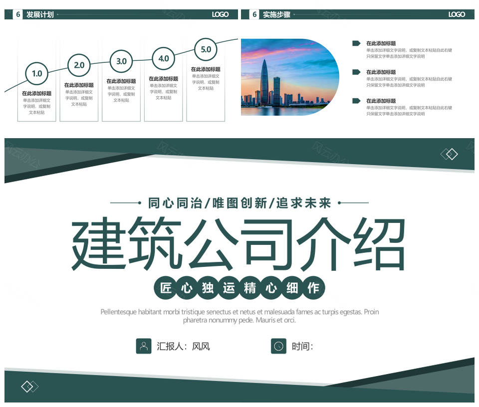 这是一张建筑企业公司介绍简约商务人才技能业务工程展示PPT模板,包含建筑企业、公司、介绍、简约、商务、人才、技能、业务、工程、展示等主题内容,也可用作建筑企业公司介绍、简约商务人才技能、商务人才技能业务、人才技能业务工程、简约商务业务工程、业务工程展示、建筑企业技能展示、公司商务人才技能、企业工程展示、简约工程展示、商务人才技能、人才技能业务、业务技能工程、简约商务展示、企业业务工程等PPT场景使用。 风云办公提供的建筑企业公司介绍简约商务人才技能业务工程展示PPT模板,下载格式为pptx,一共31页,作品中文字及图均可以修改和编辑,图片更改请在作品中右键图片并更换,文字修改请直接点击文字进行修改。
