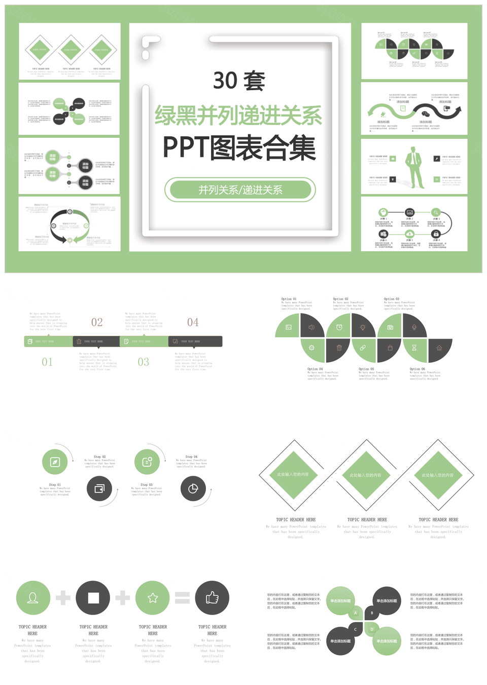 绿黑并列递进关系并列关系递进关系PPT图表合集推荐