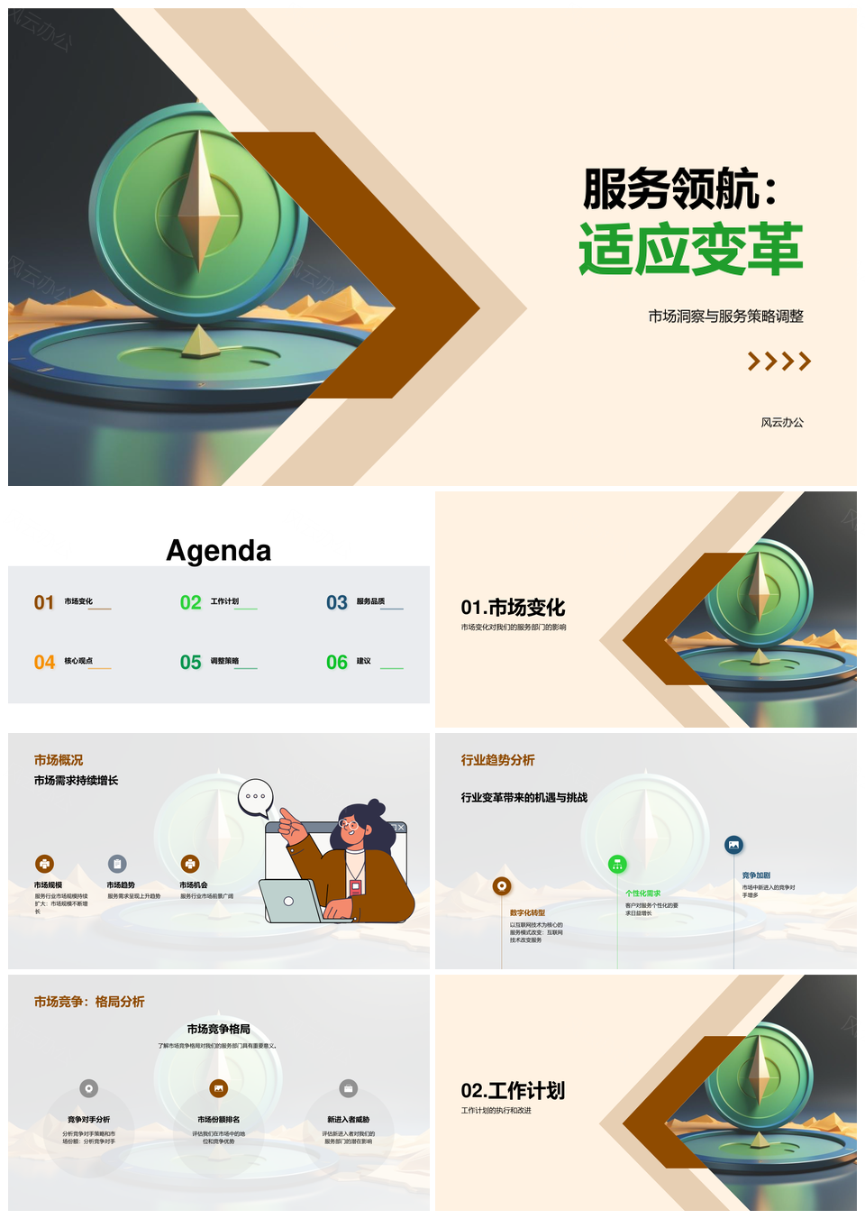 风云办公提供的服务部门计划执行总结与市场导航罗盘PPT模板,下载格式为pptx,一共28页,作品中文字及图均可以修改和编辑,图片更改请在作品中右键图片并更换,文字修改请直接点击文字进行修改。