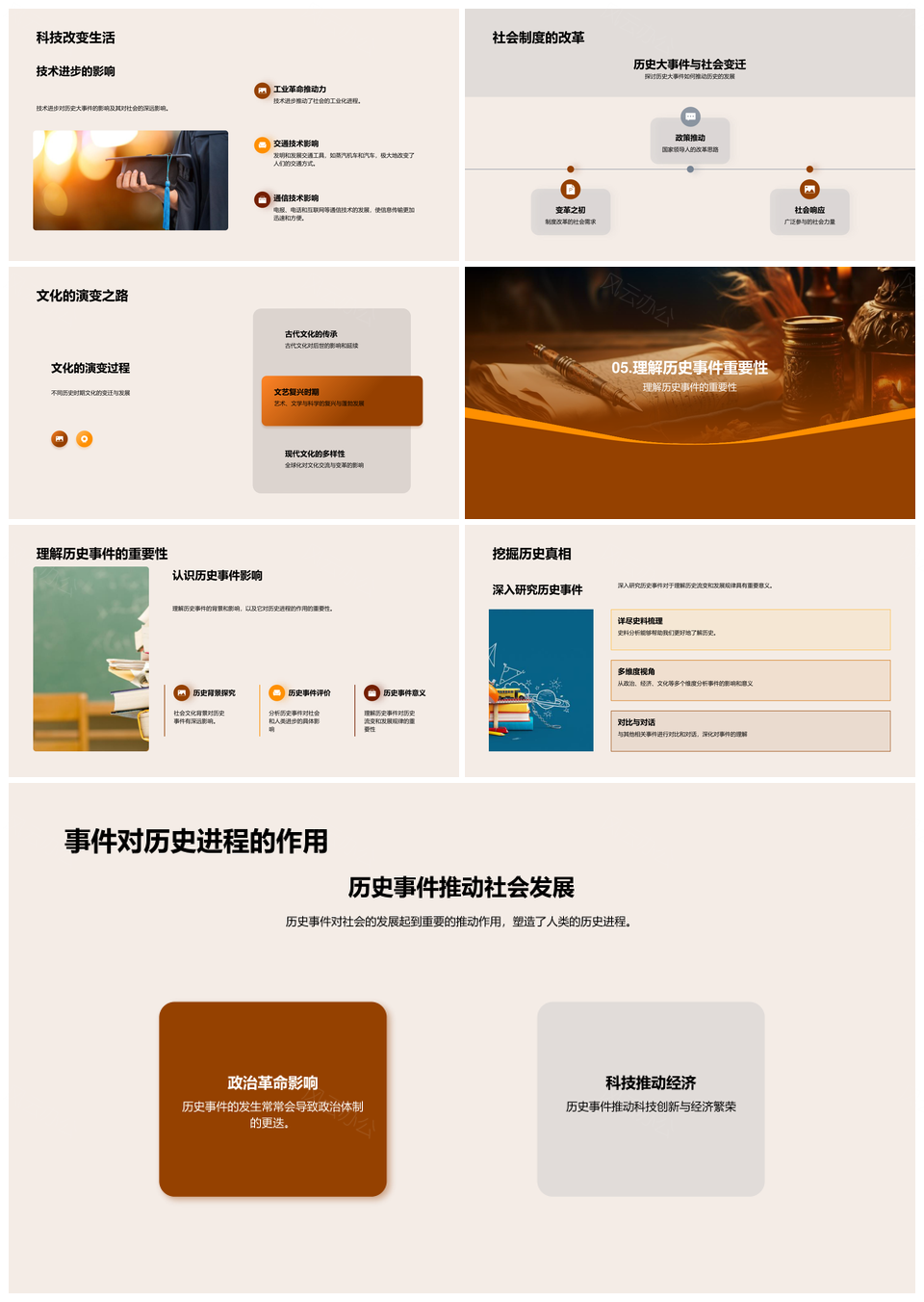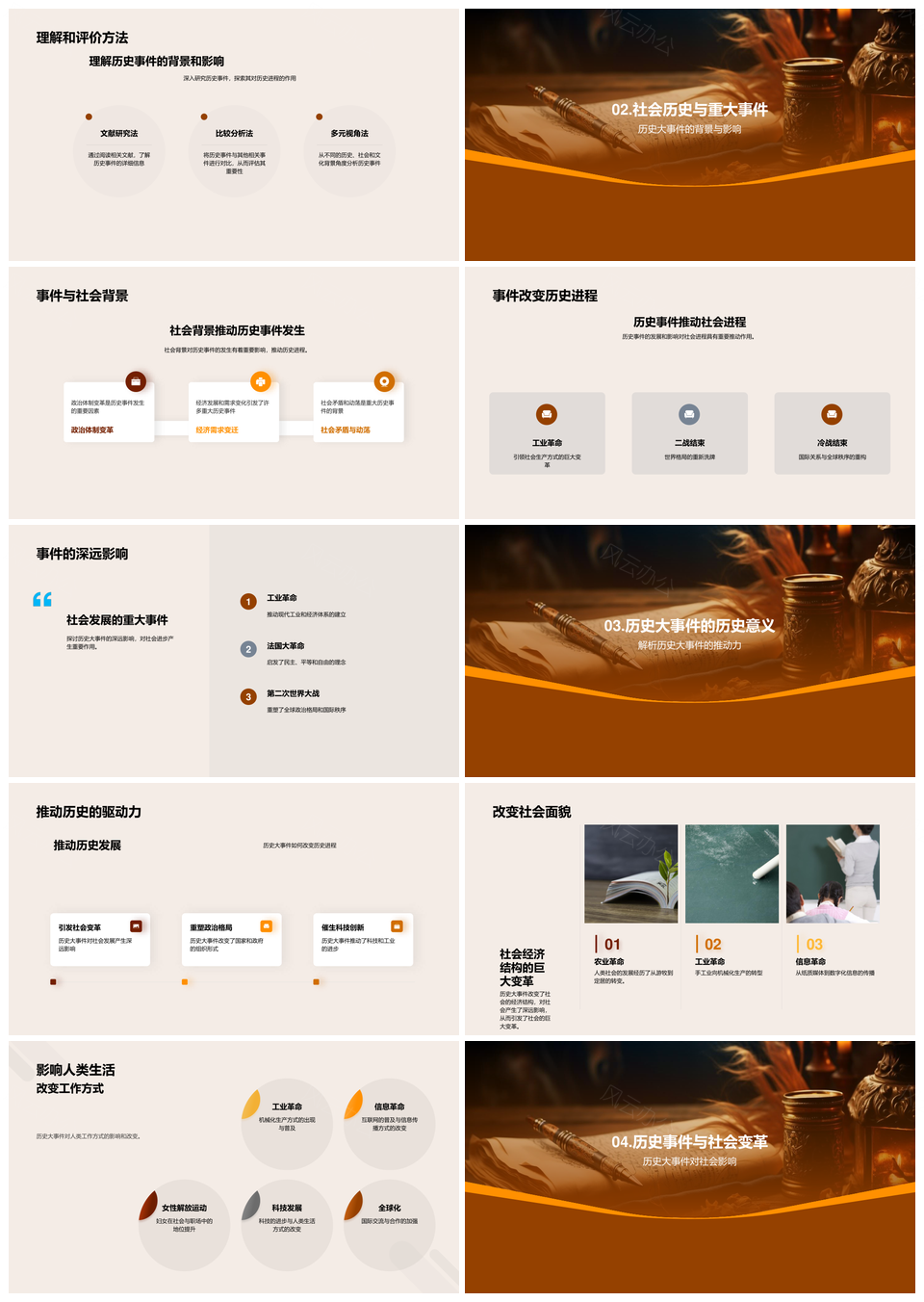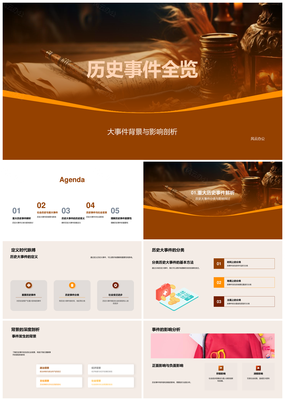 风云办公提供的历史大事件背景影响社会变革科技进步PPT模板,下载格式为pptx,一共25页,作品中文字及图均可以修改和编辑,图片更改请在作品中右键图片并更换,文字修改请直接点击文字进行修改。