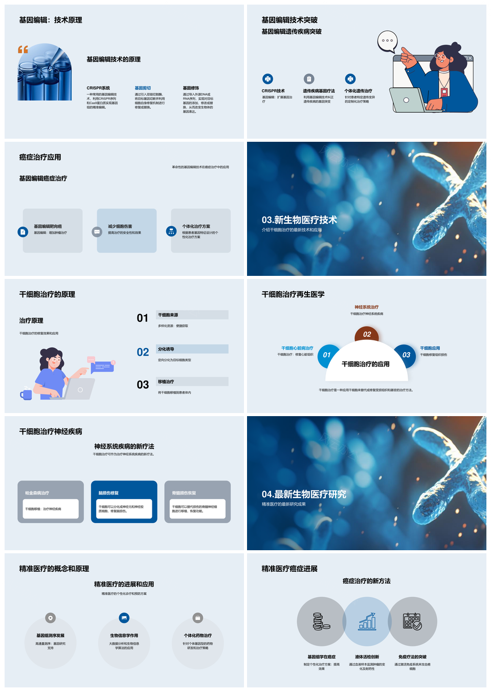 医学生物技术基因编辑干细胞精准医疗应用发展PPT模板