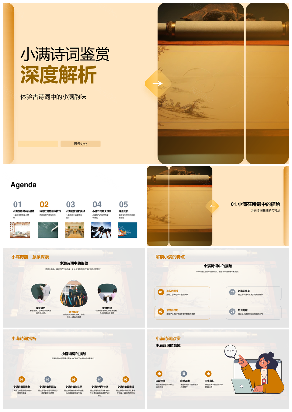 风云办公提供的小满古诗词科学文学鉴赏解析PPT模板,下载格式为pptx,一共28页,作品中文字及图均可以修改和编辑,图片更改请在作品中右键图片并更换,文字修改请直接点击文字进行修改。