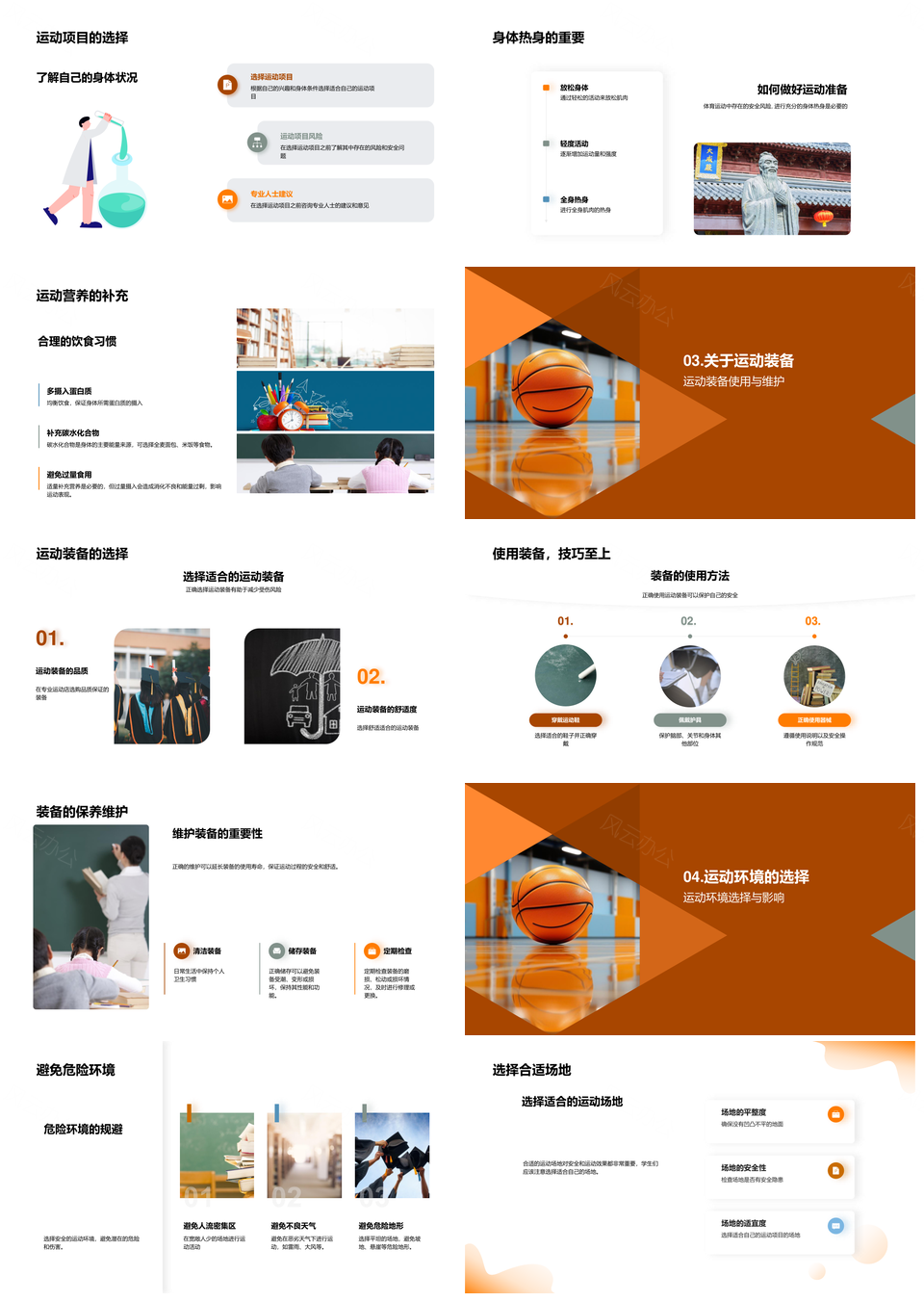 风云办公提供的初三学生运动安全装备项目热身指南PPT模板,下载格式为pptx,一共23页,作品中文字及图均可以修改和编辑,图片更改请在作品中右键图片并更换,文字修改请直接点击文字进行修改。
