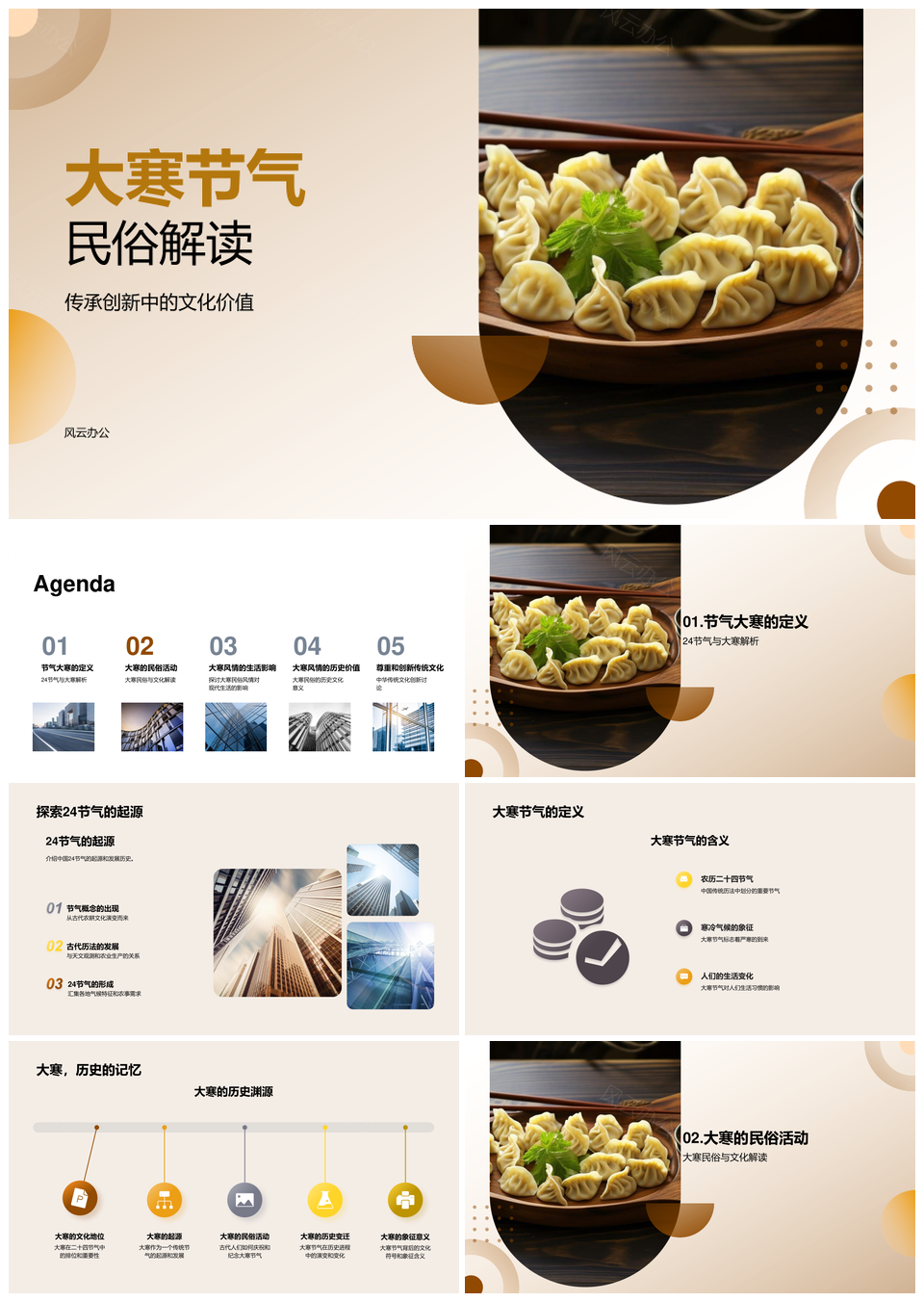 风云办公提供的大寒节气民俗活动与文化价值解析PPT模板,下载格式为pptx,一共23页,作品中文字及图均可以修改和编辑,图片更改请在作品中右键图片并更换,文字修改请直接点击文字进行修改。