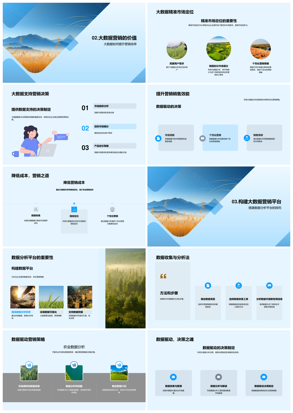 风云办公提供的农业大数据精准营销提效决策促业绩PPT模板,下载格式为pptx,一共28页,作品中文字及图均可以修改和编辑,图片更改请在作品中右键图片并更换,文字修改请直接点击文字进行修改。