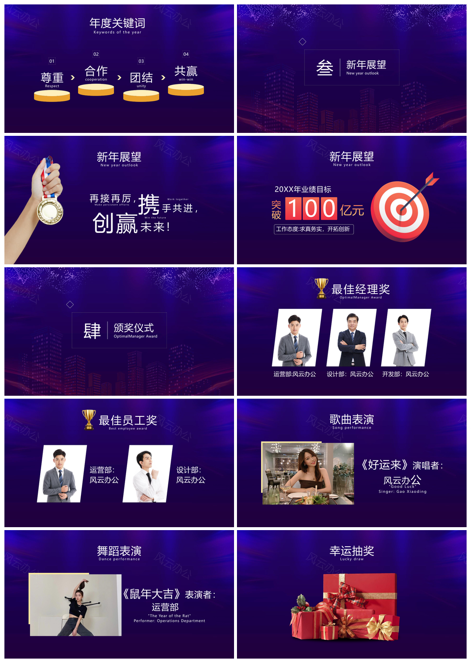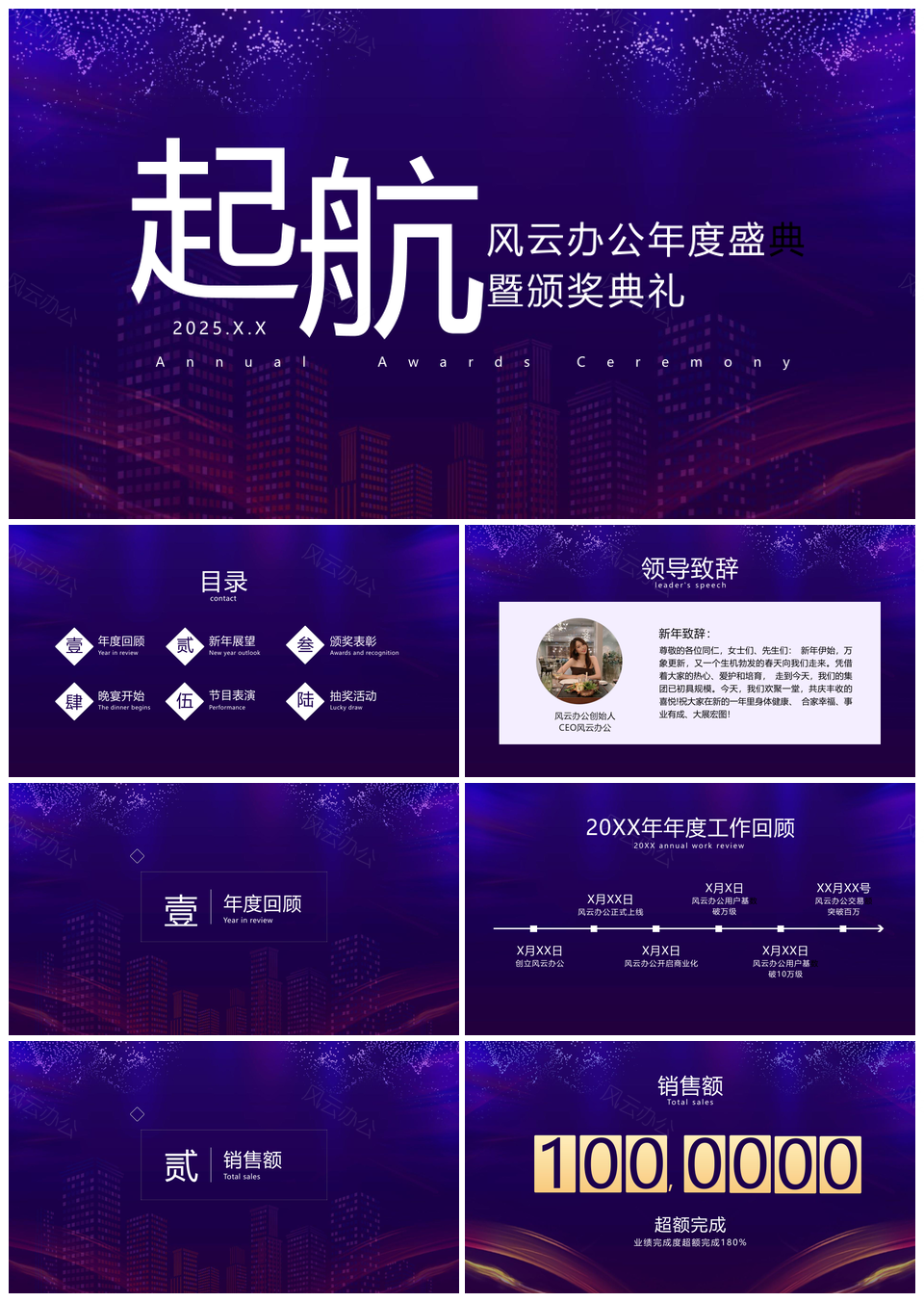 风云办公提供的2025商务地产年会喜庆简约视觉策划模板,下载格式为pptx,一共18页,作品中文字及图均可以修改和编辑,图片更改请在作品中右键图片并更换,文字修改请直接点击文字进行修改。
