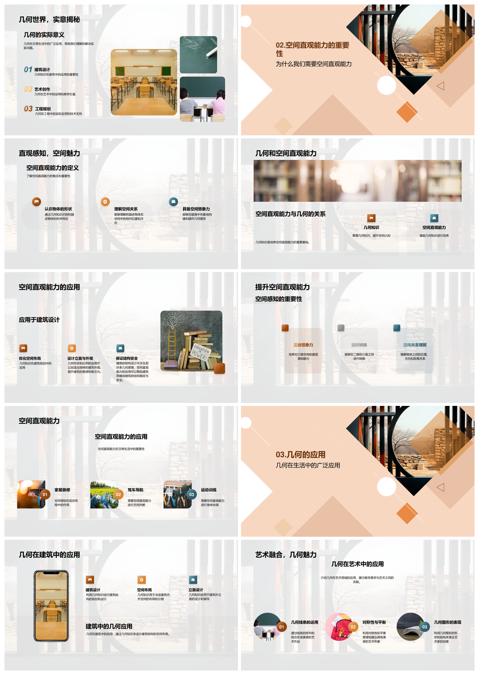 风云办公提供的几何艺术与数学空间美学PPT模板,下载格式为pptx,一共33页,作品中文字及图均可以修改和编辑,图片更改请在作品中右键图片并更换,文字修改请直接点击文字进行修改。