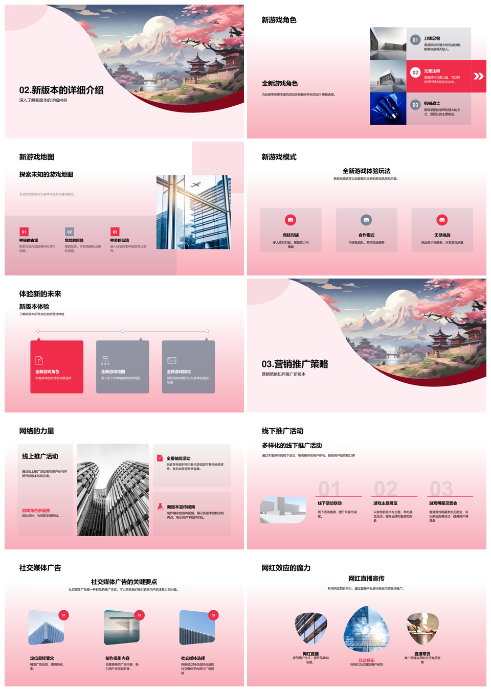 这是一张新春新游全面升级春节版本新角色地图模式PPT模板,包含新春、新游、全面升级、春节版本、新角色、地图模式等主题内容,也可用作新春新游全面升级春节版本、全面升级春节版本新角色地图模式、新春新游全面升级、新游全面升级春节版本、全面升级春节版本新角色、春节版本新角色地图模式、新春新游、新游全面升级、全面升级春节版本、春节版本新角色、新角色地图模式、新春新游春节版本、春节版本地图模式、全面升级地图模式、新春全面升级春节版本新角色等PPT场景使用。 风云办公提供的新春新游全面升级春节版本新角色地图模式PPT模板,下载格式为pptx,一共28页,作品中文字及图均可以修改和编辑,图片更改请在作品中右键图片并更换,文字修改请直接点击文字进行修改。