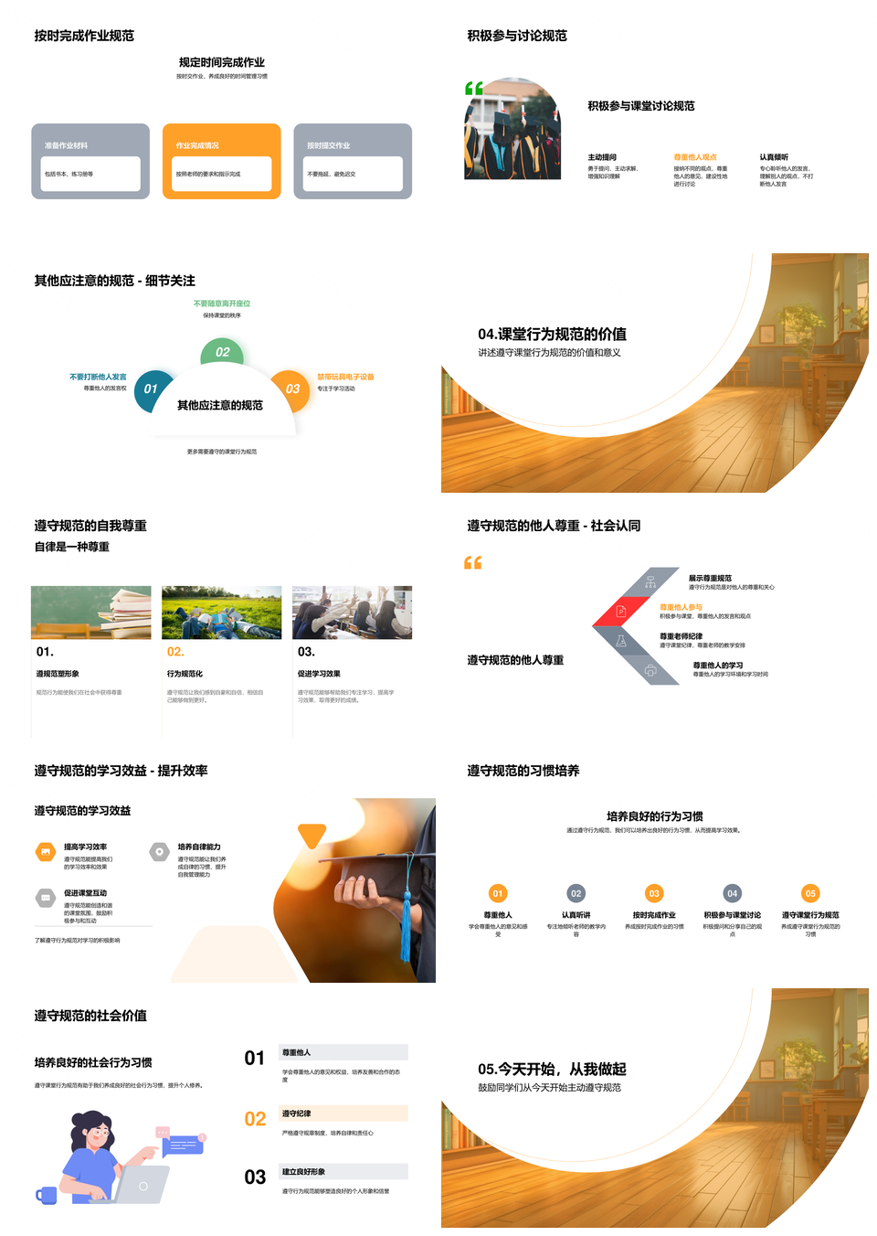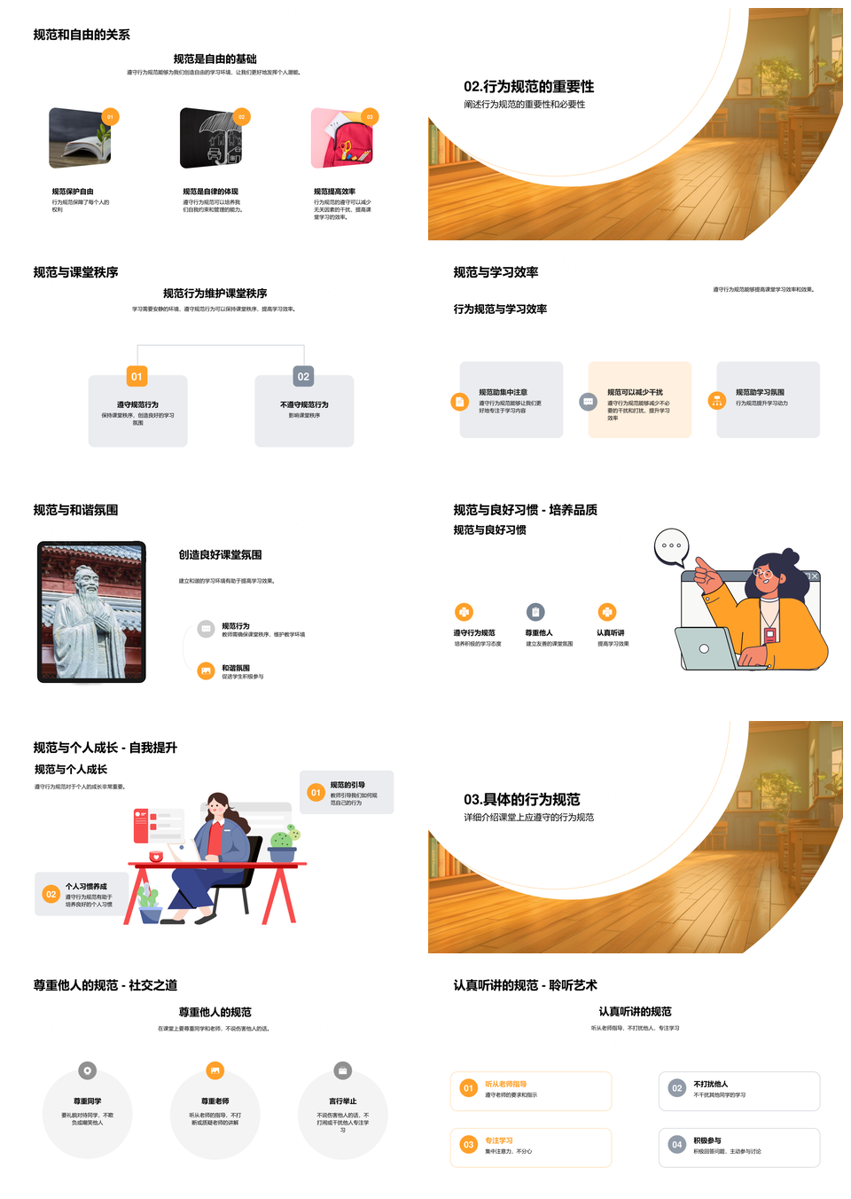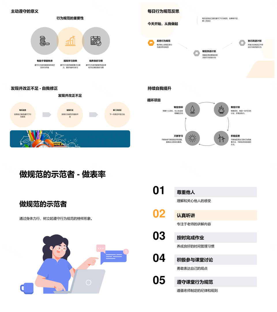 风云办公提供的课堂行为规范助力学习效率提升PPT模板,下载格式为pptx,一共33页,作品中文字及图均可以修改和编辑,图片更改请在作品中右键图片并更换,文字修改请直接点击文字进行修改。