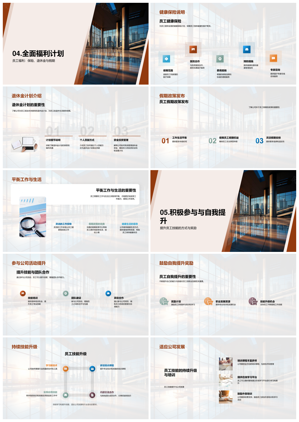 这是一张员工关怀职业发展及公司福利政策更新解析PPT模板,包含员工关怀、职业发展、公司、福利政策、更新、解析等主题内容,也可用作员工关怀职业发展及公司福利政策更新解析、员工关怀职业发展及公司福利政策、员工关怀职业发展、职业发展及公司福利政策、公司福利政策更新解析、员工关怀职业、职业发展公司福利、公司福利政策更新、员工关怀及公司福利、政策更新解析、员工关怀发展、职业发展政策、公司政策更新、福利政策解析、员工公司福利等PPT场景使用。 风云办公提供的员工关怀职业发展及公司福利政策更新解析PPT模板,下载格式为pptx,一共28页,作品中文字及图均可以修改和编辑,图片更改请在作品中右键图片并更换,文字修改请直接点击文字进行修改。