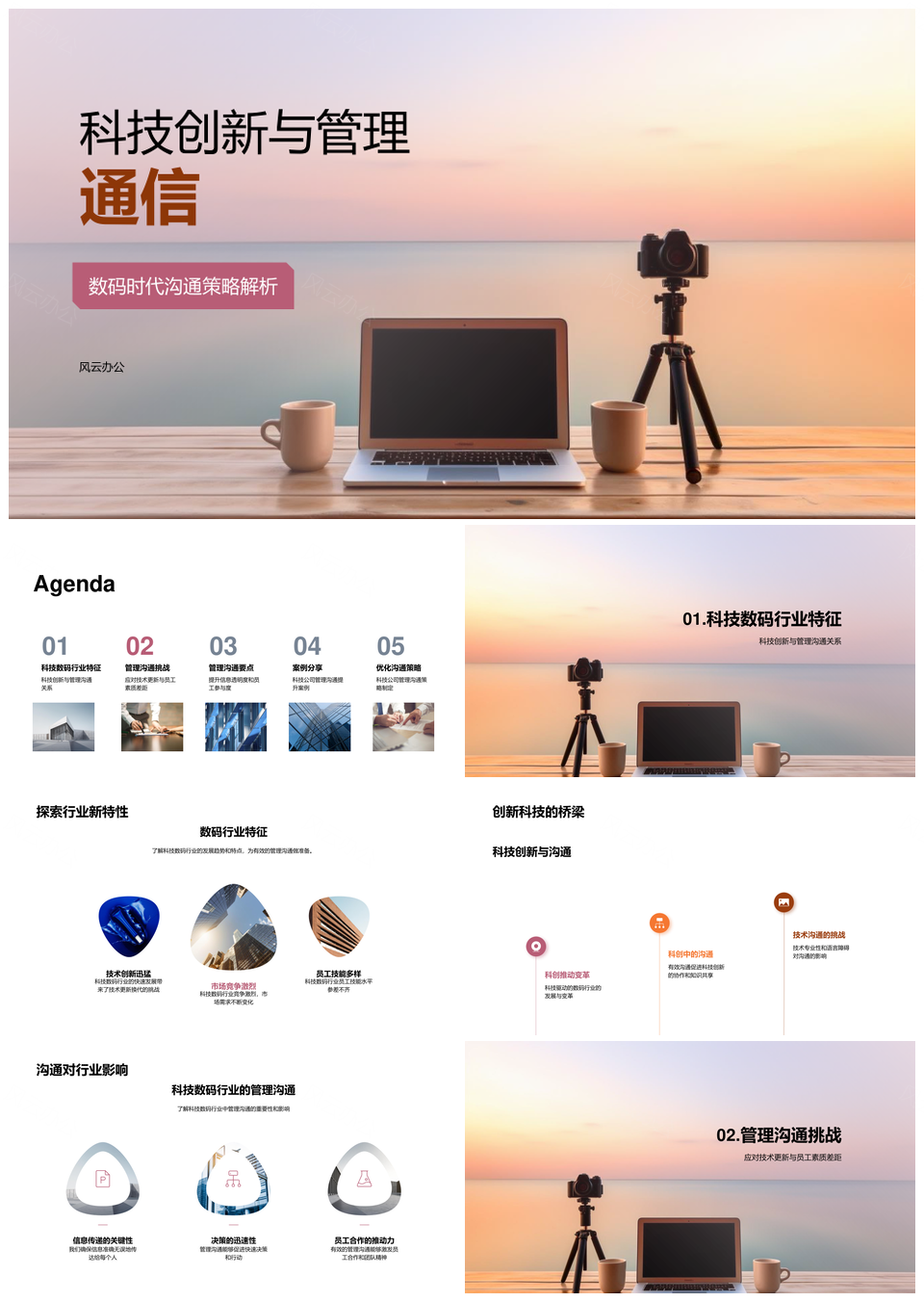 风云办公提供的数码时代科技创新与管理通信策略挑战PPT模板,下载格式为pptx,一共22页,作品中文字及图均可以修改和编辑,图片更改请在作品中右键图片并更换,文字修改请直接点击文字进行修改。