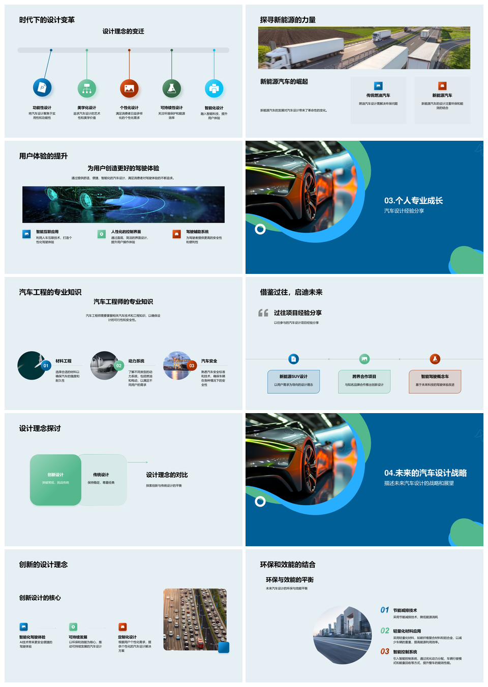 未来汽车设计趋势与新能源用户体验创新PPT模板推荐