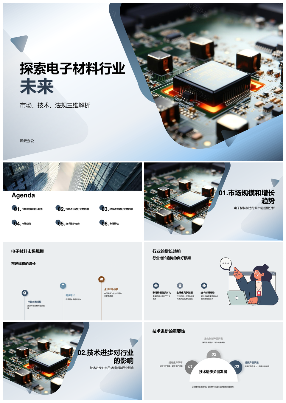 这是一张电子材料制造市场增长与环保技术进步趋势PPT模板,包含电子材料、制造市场、增长、环保技术、进步趋势等主题内容,也可用作电子材料制造市场增长与环保技术进步趋势、电子材料制造市场增长环保技术、制造市场增长环保技术进步、市场增长环保技术进步趋势、电子材料制造环保技术进步、制造市场增长环保技术、市场环保技术进步趋势、电子材料制造市场增长、电子材料市场增长环保技术、制造环保技术进步趋势、市场增长环保技术进步、电子材料制造环保技术、市场环保技术进步、环保技术进步趋势、电子材料制造市场等PPT场景使用。 风云办公提供的电子材料制造市场增长与环保技术进步趋势PPT模板,下载格式为pptx,一共22页,作品中文字及图均可以修改和编辑,图片更改请在作品中右键图片并更换,文字修改请直接点击文字进行修改。