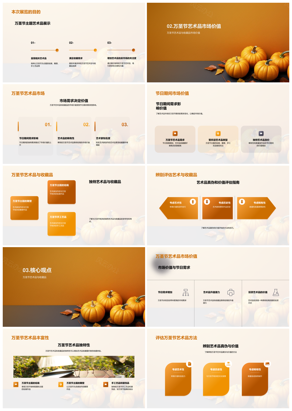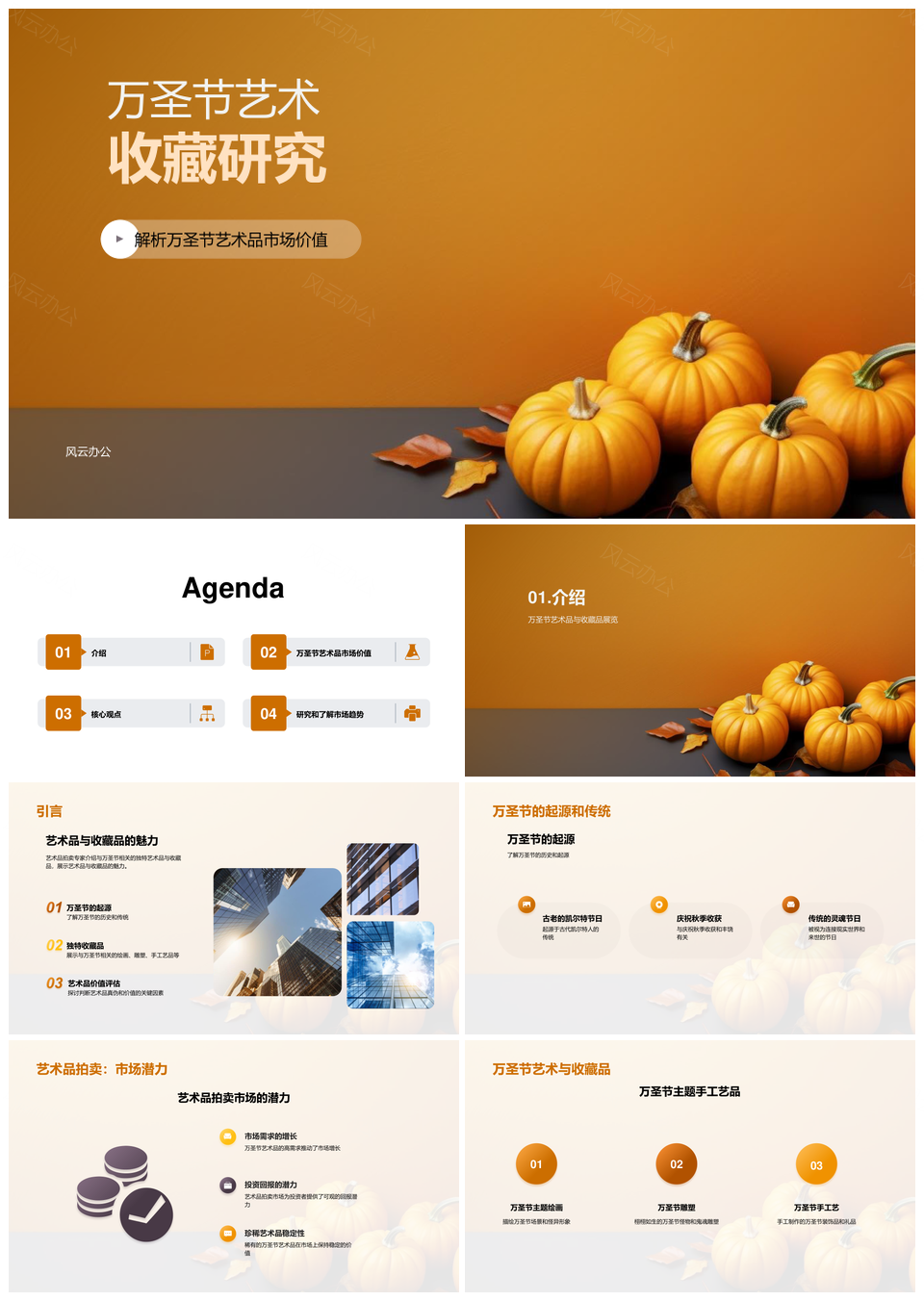 风云办公提供的万圣节艺术品收藏拍卖与传统起源研究PPT模板,下载格式为pptx,一共25页,作品中文字及图均可以修改和编辑,图片更改请在作品中右键图片并更换,文字修改请直接点击文字进行修改。