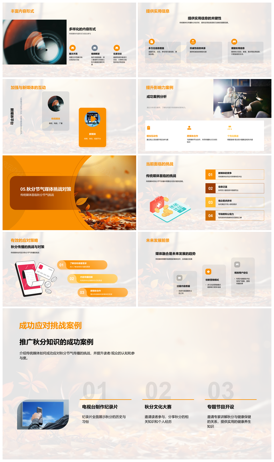 这是一张秋分传播传统媒体价值挑战应对策划PPT模板,包含秋分、传播、传统媒体、价值、挑战、应对、策划等主题内容,也可用作秋分传播传统媒体价值、传播传统媒体价值挑战、传统媒体价值挑战应对、价值挑战应对策划、秋分传播传统媒体、传播传统媒体价值、传统媒体价值挑战、价值挑战应对、挑战应对策划、秋分传播、传播传统媒体、传统媒体价值、价值挑战、挑战应对、应对策划等PPT场景使用。