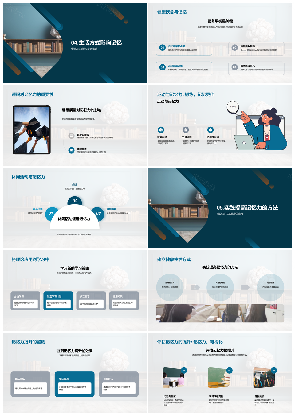 提升记忆力学习策略与大脑健康训练习惯PPT模板推荐