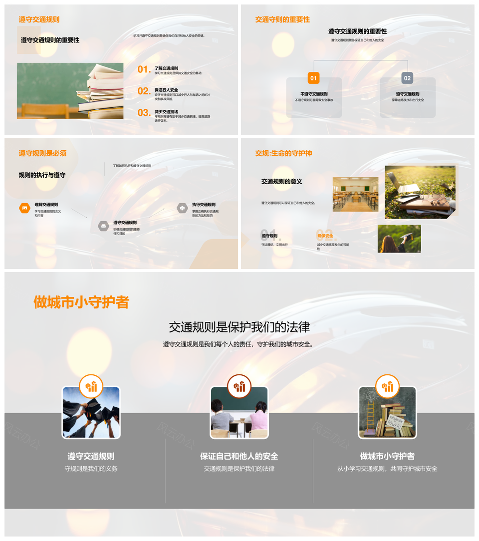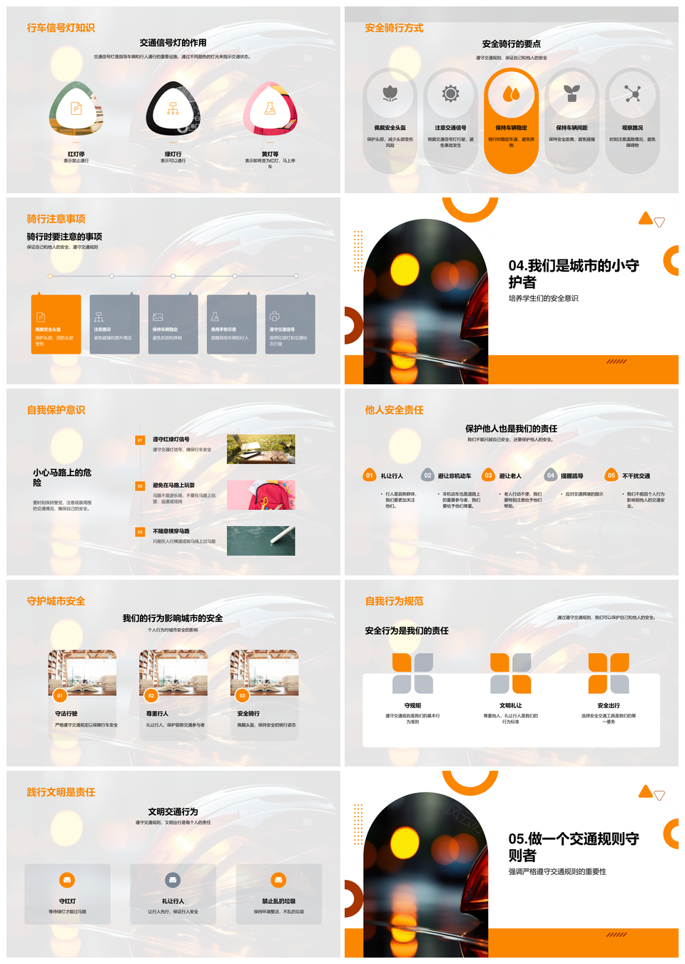 这是一张交通安全小卫士守交规戴盔骑行看信号灯PPT模板,包含交通安全、小卫士、守交规、戴盔、骑行、看信号灯等主题内容,也可用作交通安全小卫士守交规戴盔、小卫士守交规戴盔骑行、守交规戴盔骑行看信号灯、交通安全小卫士守交规、小卫士守交规戴盔、守交规戴盔骑行、戴盔骑行看信号灯、交通安全小卫士、小卫士守交规、守交规戴盔、戴盔骑行、骑行看信号灯、小卫士骑行看信号灯、守交规看信号灯、戴盔看信号灯等PPT场景使用。 风云办公提供的交通安全小卫士守交规戴盔骑行看信号灯PPT模板,下载格式为pptx,一共33页,作品中文字及图均可以修改和编辑,图片更改请在作品中右键图片并更换,文字修改请直接点击文字进行修改。