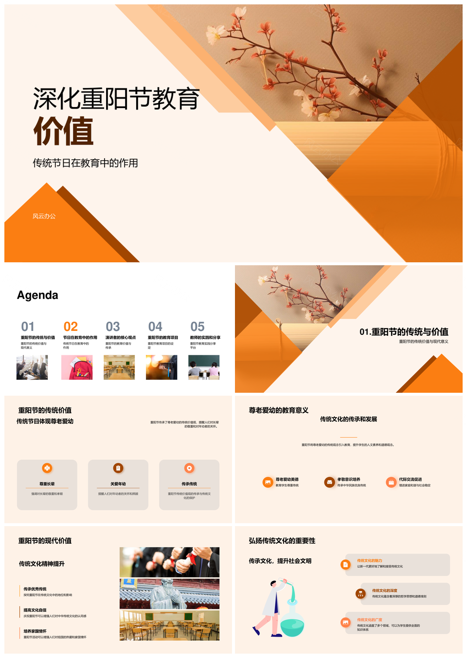 风云办公提供的重阳节教育弘扬传统尊老育文明PPT模板,下载格式为pptx,一共33页,作品中文字及图均可以修改和编辑,图片更改请在作品中右键图片并更换,文字修改请直接点击文字进行修改。
