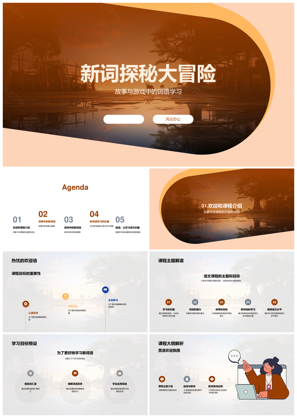 二年级语文新词探秘故事游戏大冒险PPT模板推荐