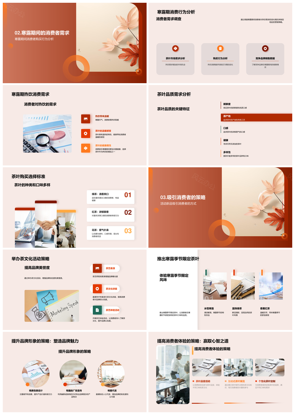 这是一张寒露茶市争霸品牌新品秋叶茶文化活动PPT模板,包含寒露、茶市、争霸、品牌、新品、秋叶茶、文化活动等主题内容,也可用作寒露茶市争霸活动、茶市争霸品牌新品、品牌新品秋叶茶文化、寒露茶市品牌新品、争霸品牌新品秋叶、秋叶茶文化活动、茶市争霸新品秋叶、新品秋叶茶文化、茶市品牌新品活动、寒露茶文化活动、品牌秋叶茶文化、寒露茶市争霸、茶市争霸品牌、品牌新品秋叶、新品茶文化活动等PPT场景使用。