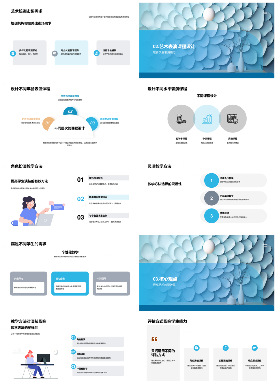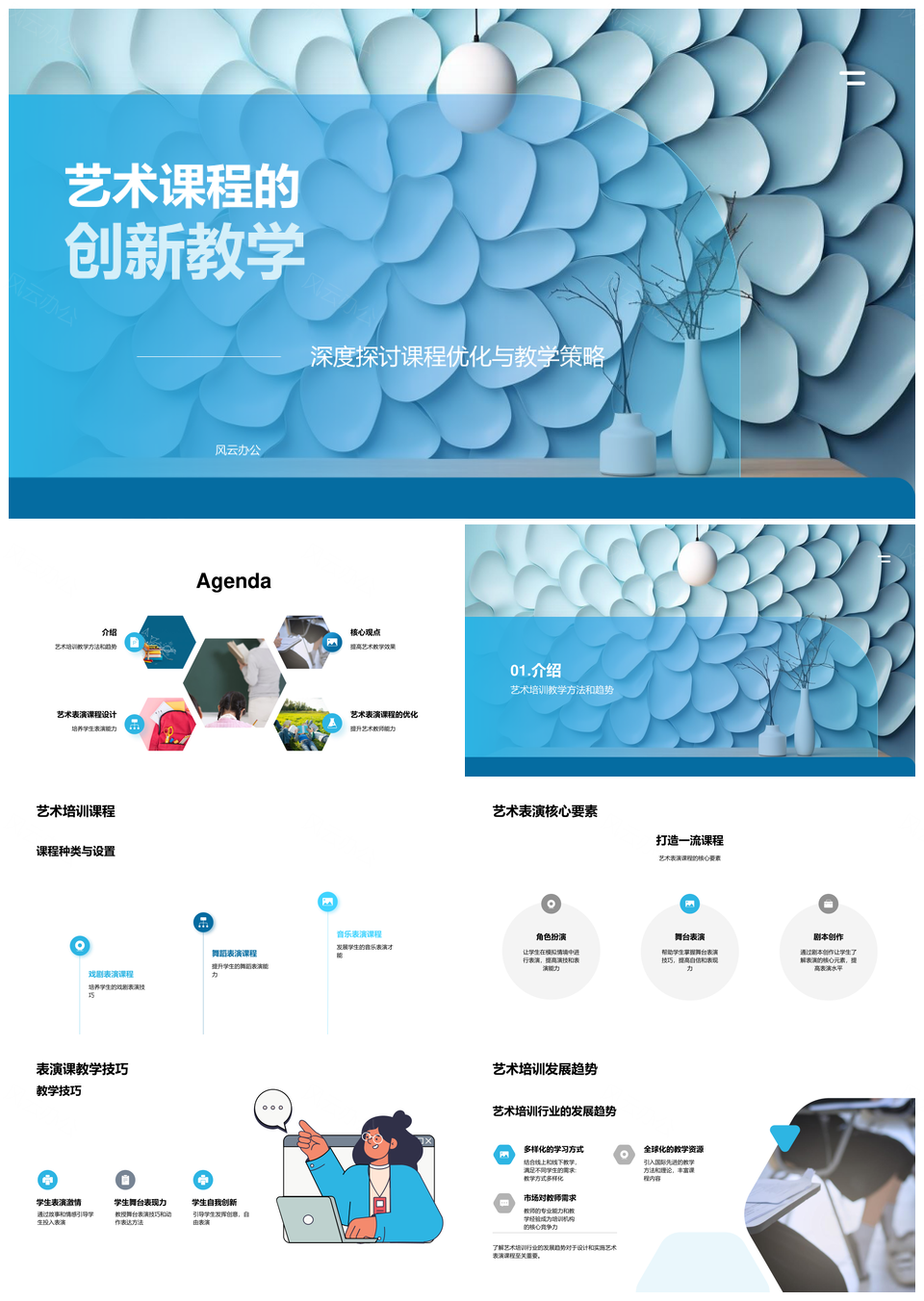 这是一张艺术表演课程设计实施与教师团队培训教法创新PPT模板,包含艺术表演、课程设计、实施、教师团队、培训、教法创新等主题内容,也可用作艺术表演课程设计实施、艺术表演课程设计、艺术表演课程、艺术表演、表演课程设计实施、表演课程设计、表演课程、课程设计实施教师团队、课程设计实施、课程设计、实施教师团队培训、实施教师团队、实施教师、教师团队培训教法创新、教师团队培训等PPT场景使用。 风云办公提供的艺术表演课程设计实施与教师团队培训教法创新PPT模板,下载格式为pptx,一共27页,作品中文字及图均可以修改和编辑,图片更改请在作品中右键图片并更换,文字修改请直接点击文字进行修改。