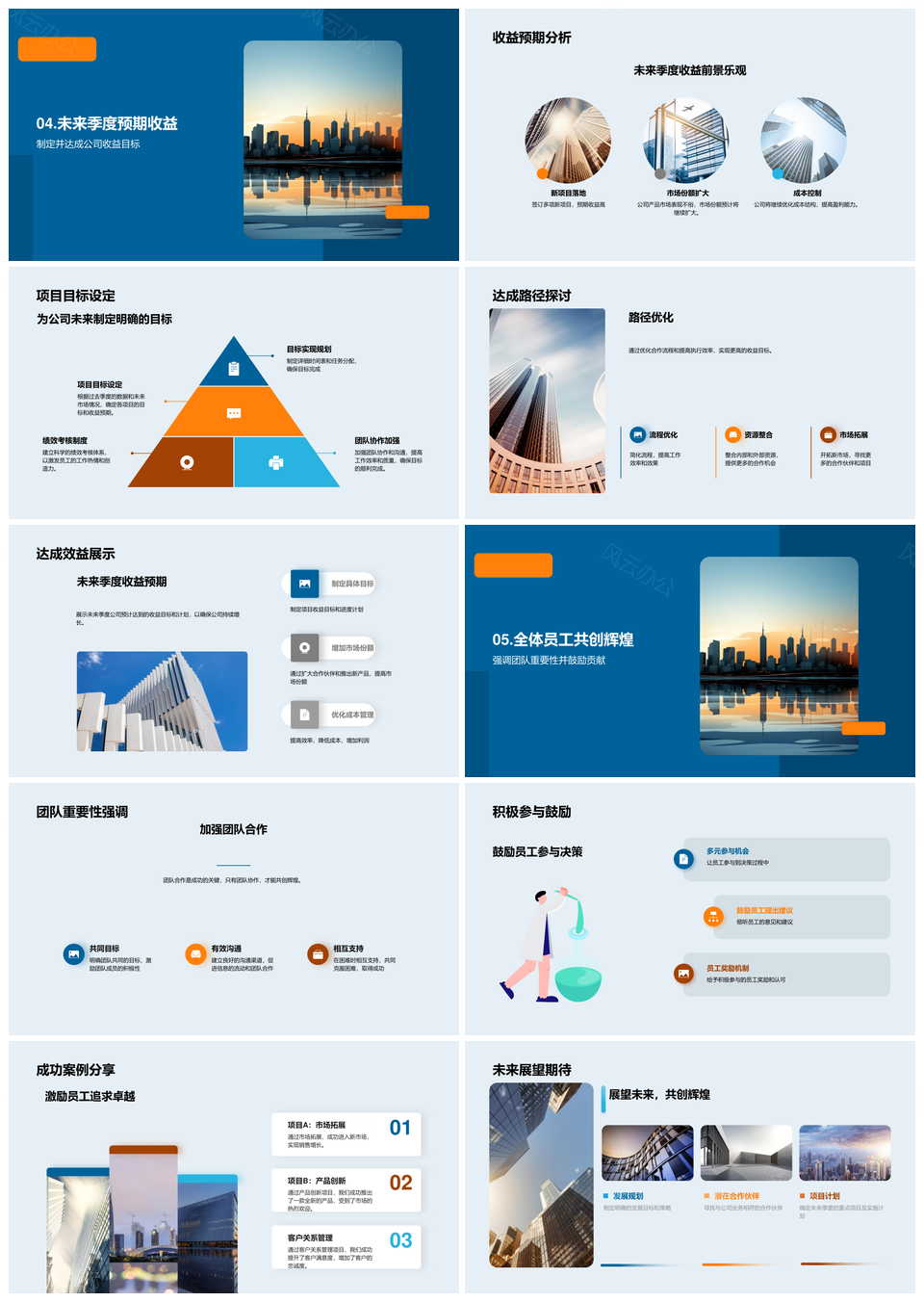 这是一张季度成绩未来规划团队协力合作收益成长趋势PPT模板,包含季度成绩、未来规划、团队、协力合作、收益、成长趋势等主题内容,也可用作季度成绩未来规划团队协力合作、未来规划团队协力合作收益、团队协力合作收益成长趋势、季度成绩未来规划团队协力、未来规划团队协力合作、团队协力合作收益、合作收益成长趋势、季度成绩未来规划、未来规划团队协力、团队协力合作、合作收益、收益成长趋势等PPT场景使用。 风云办公提供的季度成绩未来规划团队协力合作收益成长趋势PPT模板,下载格式为pptx,一共28页,作品中文字及图均可以修改和编辑,图片更改请在作品中右键图片并更换,文字修改请直接点击文字进行修改。