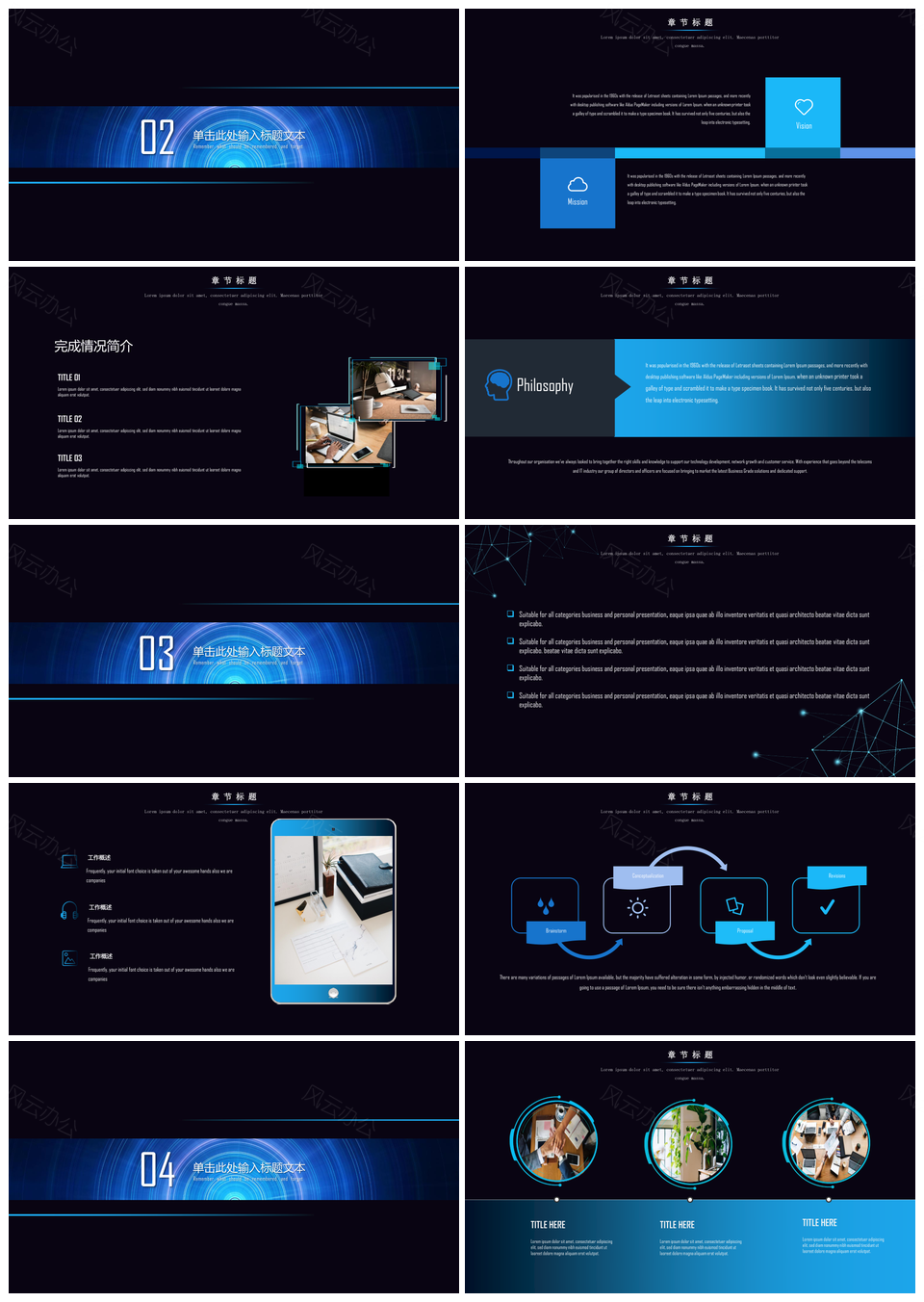 蓝色经典科技风格大气商务汇报通用PPT模板