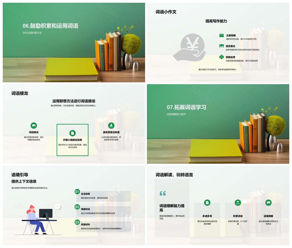风云办公提供的教师词语拆分联想词义语境运用指南PPT模板,下载格式为pptx,一共24页,作品中文字及图均可以修改和编辑,图片更改请在作品中右键图片并更换,文字修改请直接点击文字进行修改。
