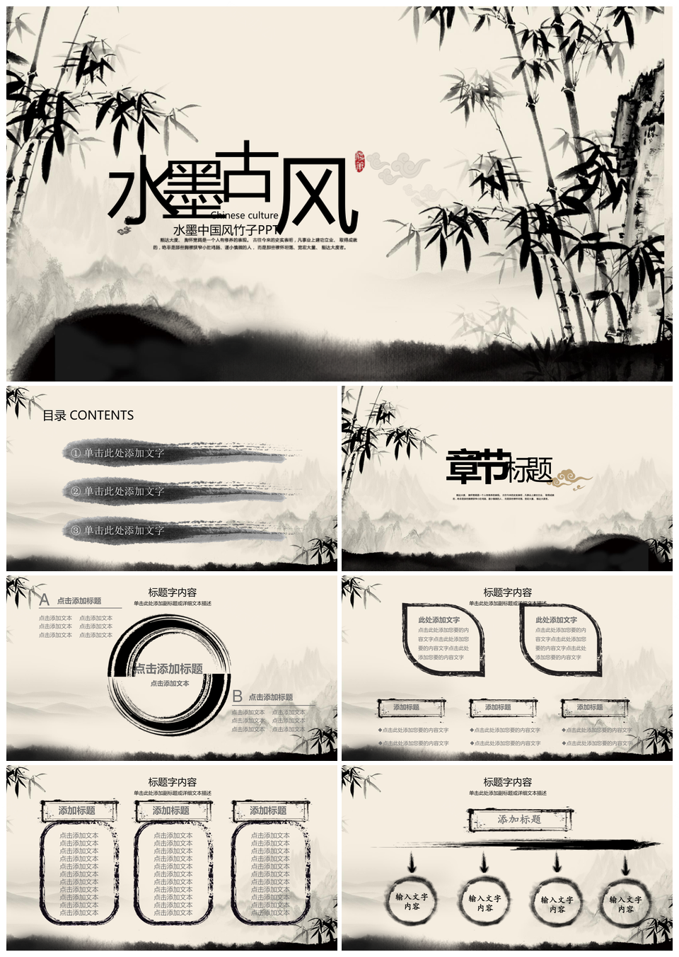 这是一张水墨竹韵山水教育绘画动态ppt模板,包含水墨竹韵、山水、教育、绘画等主题内容,也可用作水墨竹韵山水教育、竹韵山水教育绘画、山水教育绘画动态、教育绘画动态模板、水墨竹韵山水、竹韵山水教育、山水教育绘画、教育绘画动态、绘画动态模板、水墨竹韵、竹韵山水、山水教育、教育绘画、绘画动态、动态模板等PPT场景使用。 风云办公提供的水墨竹韵山水教育绘画动态ppt模板,下载格式为pptx,一共30页,作品中文字及图均可以修改和编辑,图片更改请在作品中右键图片并更换,文字修改请直接点击文字进行修改。
