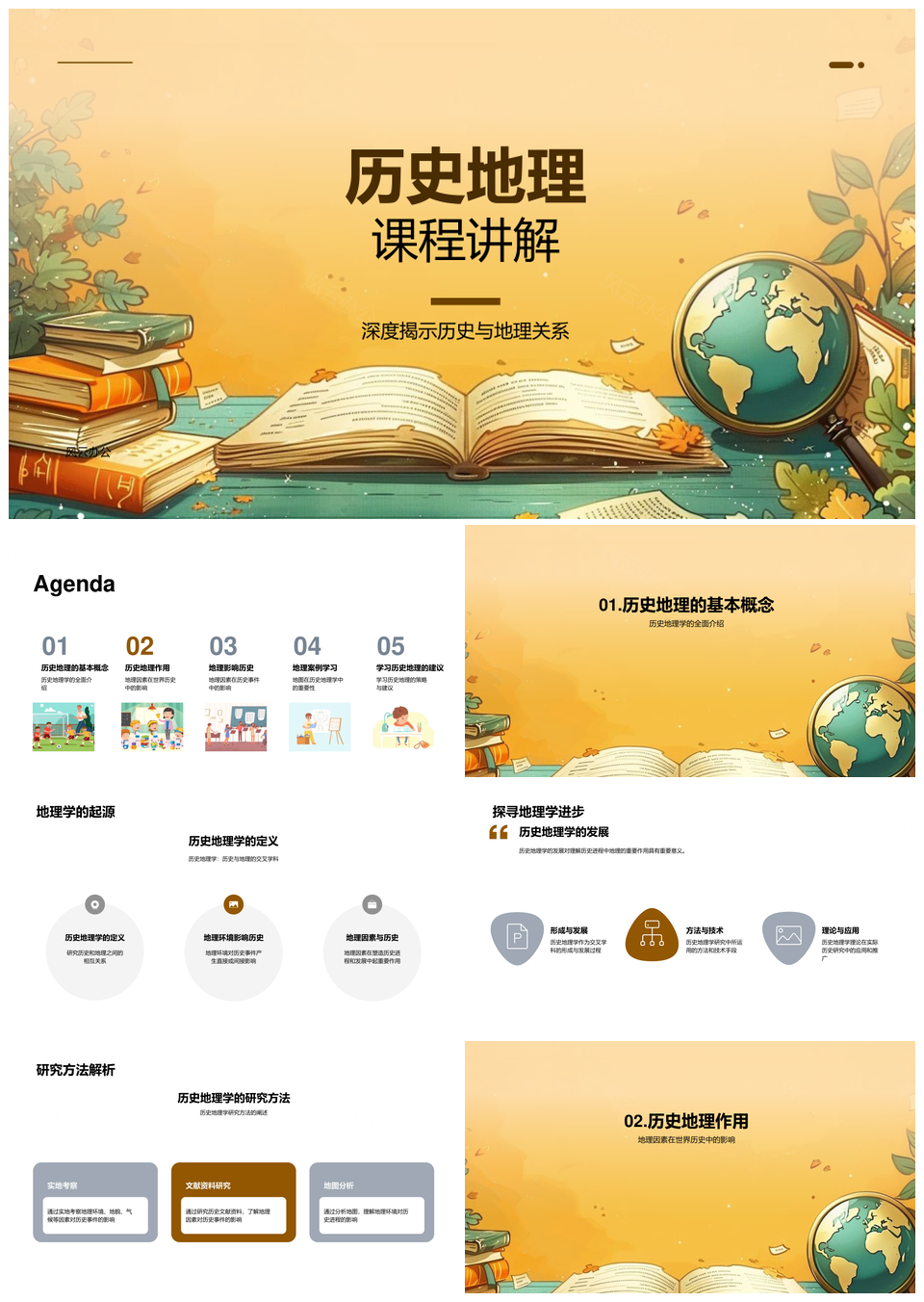 风云办公提供的历史地理学课程发展与关系解析PPT模板,下载格式为pptx,一共23页,作品中文字及图均可以修改和编辑,图片更改请在作品中右键图片并更换,文字修改请直接点击文字进行修改。