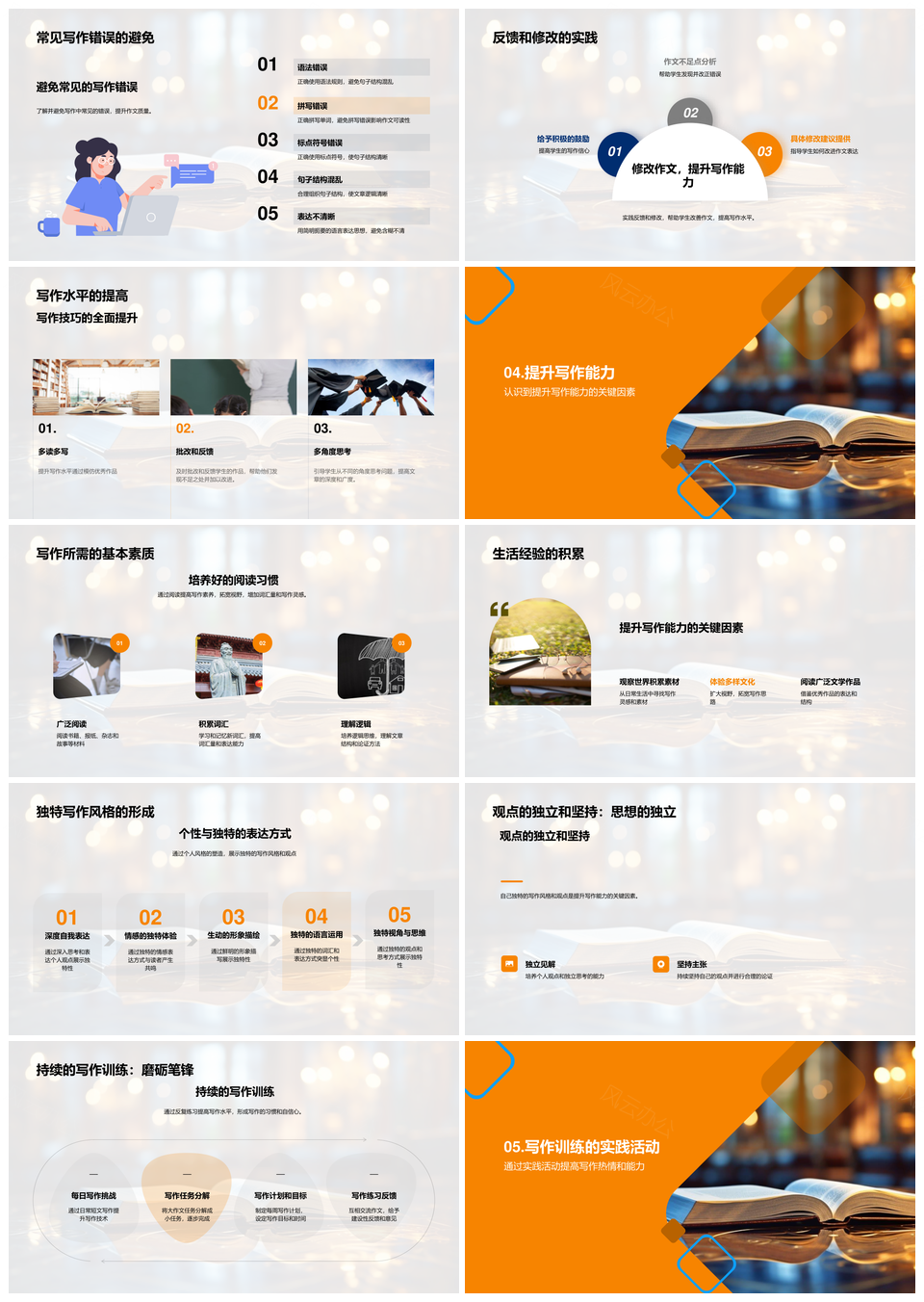 风云办公提供的作文能力基础提升全面训练结构特点PPT模板,下载格式为pptx,一共33页,作品中文字及图均可以修改和编辑,图片更改请在作品中右键图片并更换,文字修改请直接点击文字进行修改。